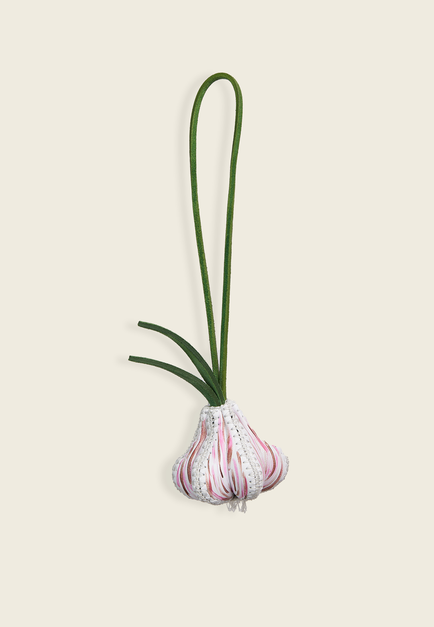 Подвес в форме чеснока выполнен вручную из натуральной кожи с аккуратной отделкой. Образ чеснока издавна связывали с защитой и жизненной силой, поэтому такой аксессуар несёт в себе символику оберега. Он станет не просто аксессуаром, а маленьким напоминанием о защите и внутренней силе.