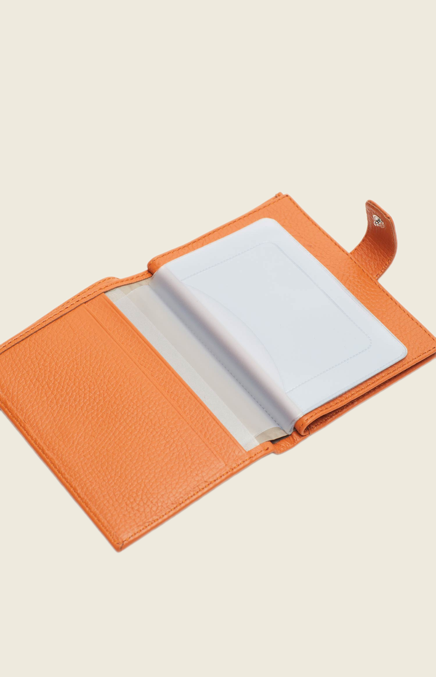 Аксессуар выполнен из зернистой кожи. Закрывается на прочную кнопку. Внутри – несколько отделений: для паспорта, денежных купюр, водительского удостоверения и кредитных карт.