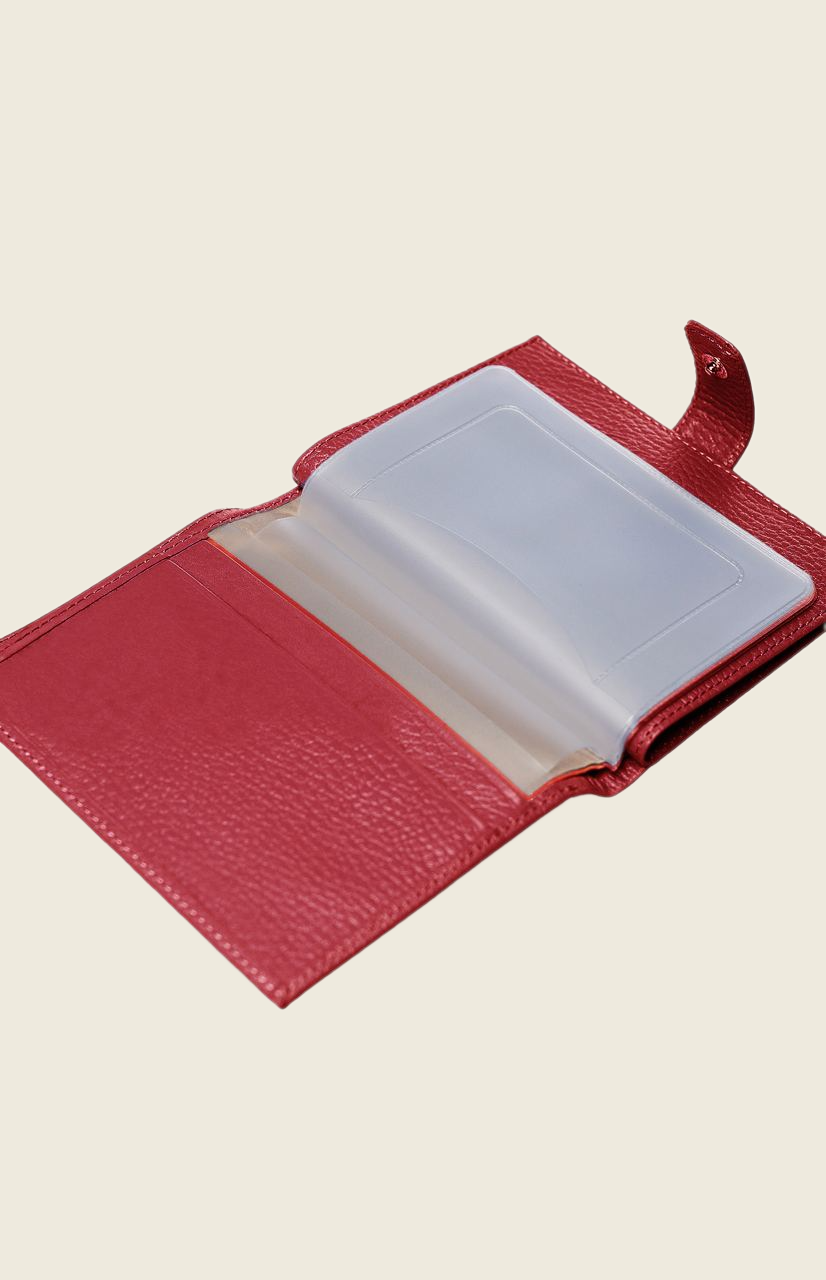Аксессуар выполнен из зернистой кожи и закрывается на прочную кнопку. Внутри – несколько отделений: для паспорта, денежных купюр, водительского удостоверения и кредитных карт.