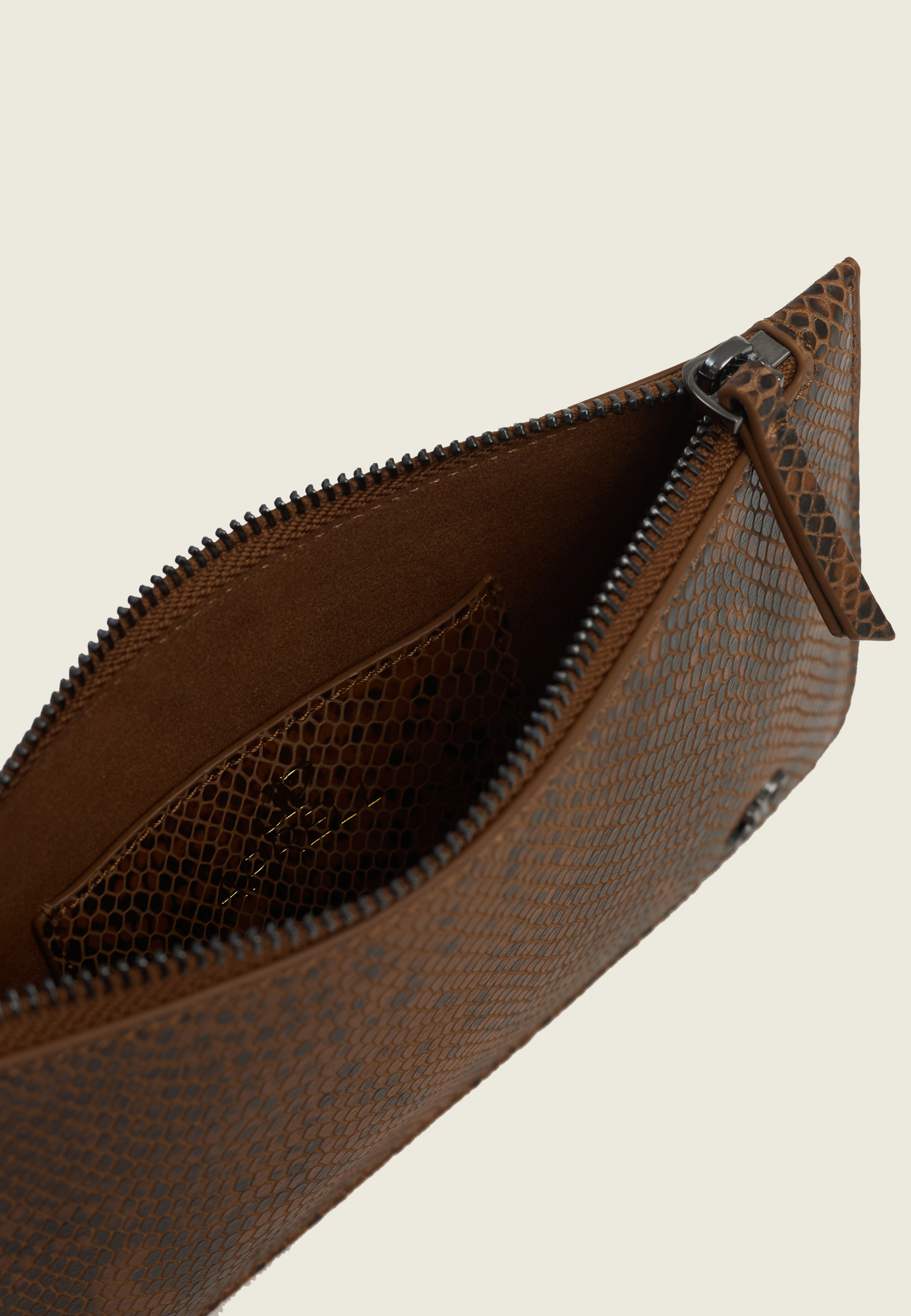 Минималистичный клатч, который легко адаптируется под разные задачи. Его можно использовать как кошелёк для документов и карт, как косметичку или как самостоятельный аксессуар на выход. Внутри достаточно места для всего необходимого: телефон, картхолдер, ключи и базовые мелочи.
