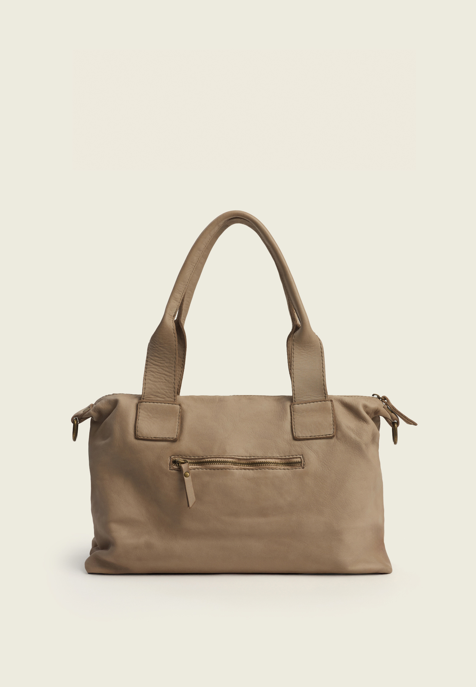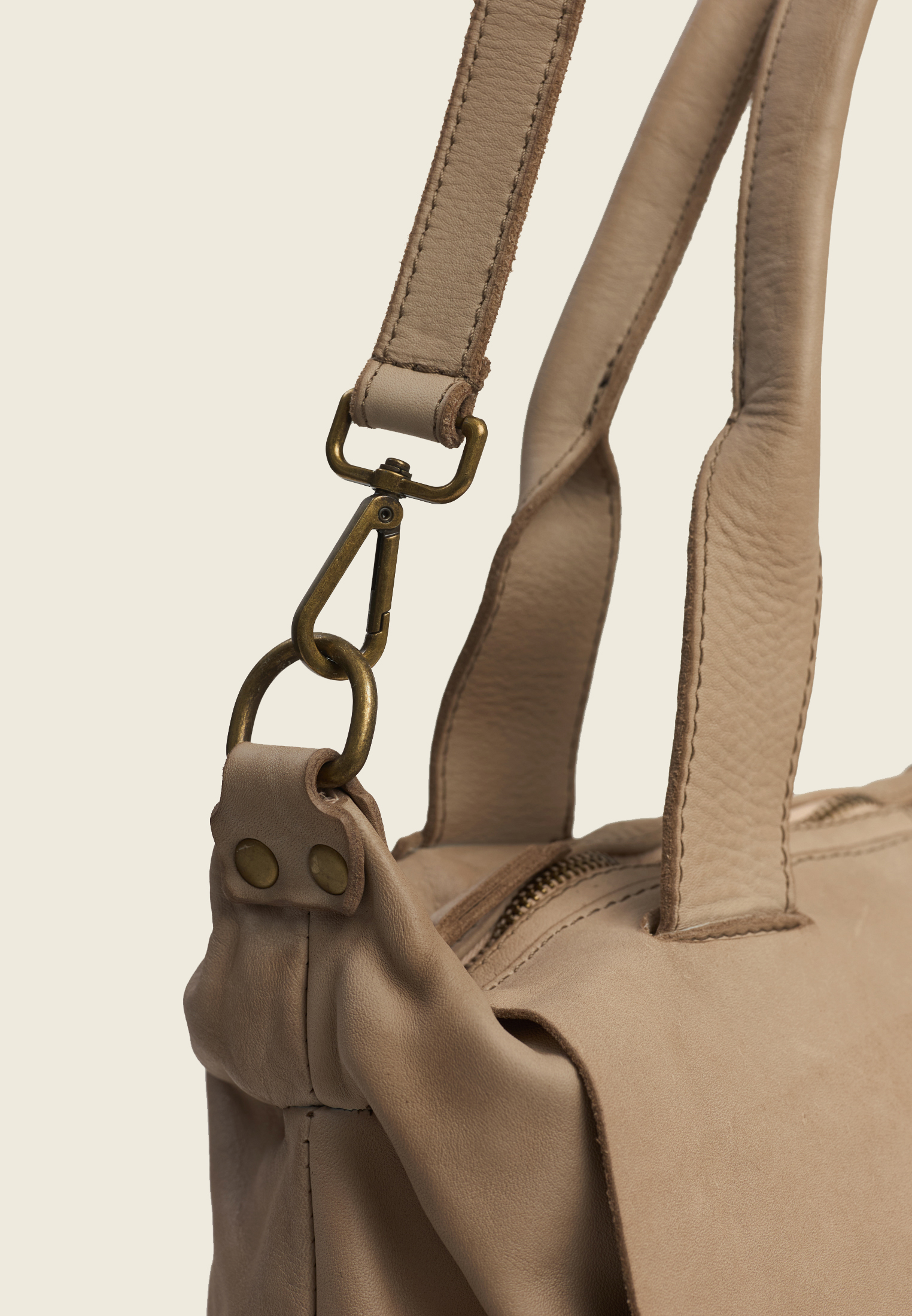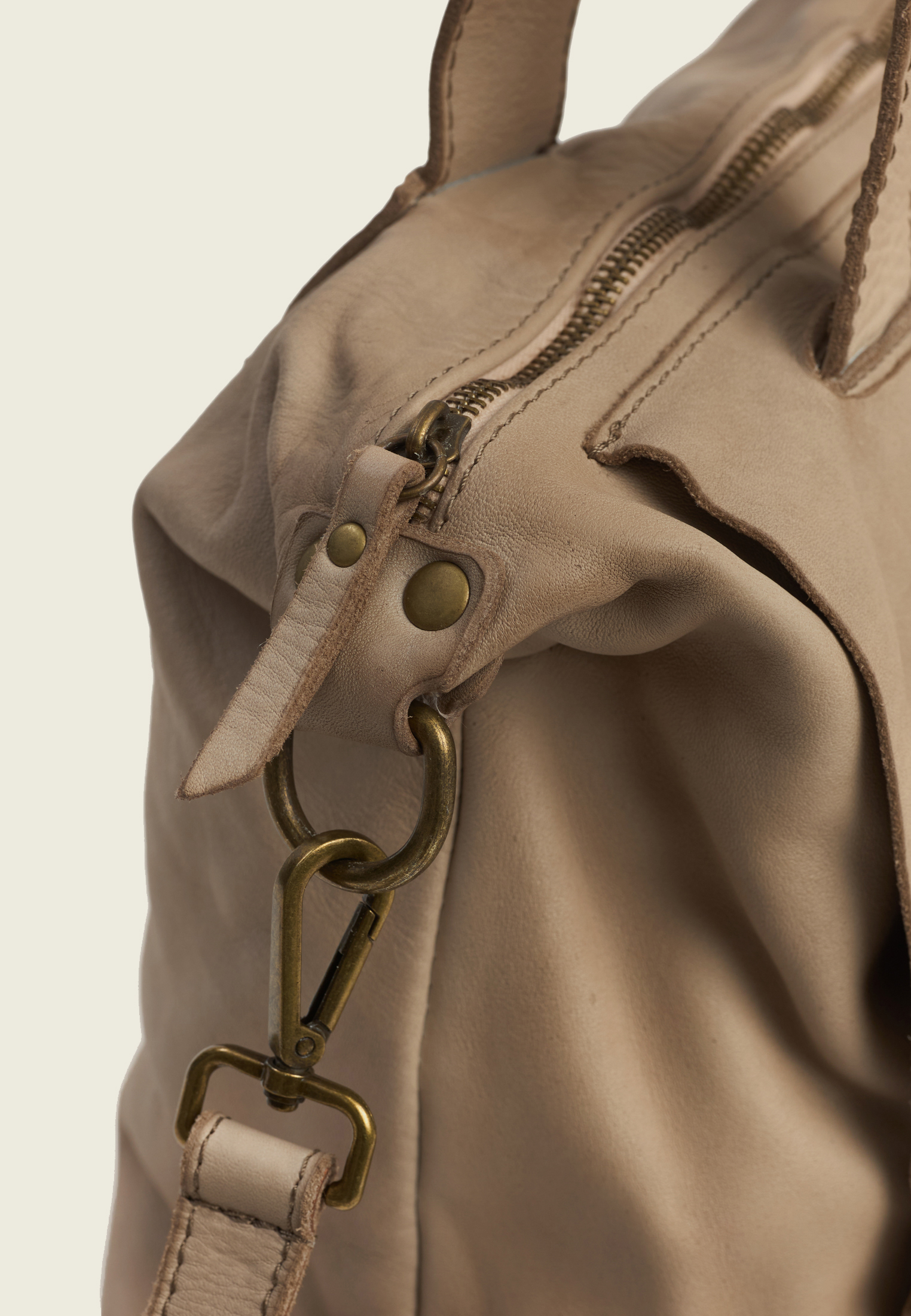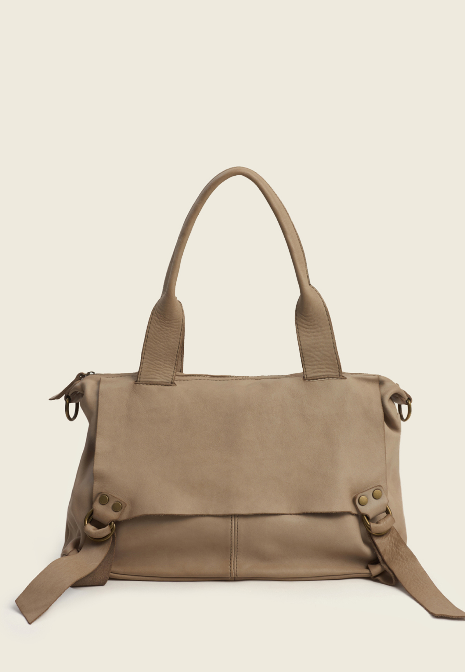 Внутри — основное отделение и два боковых кармана (для секретов). Ремень отстёгивается, так что сумку можно носить в руках, на плече или через плечо — в зависимости от ритма дня.