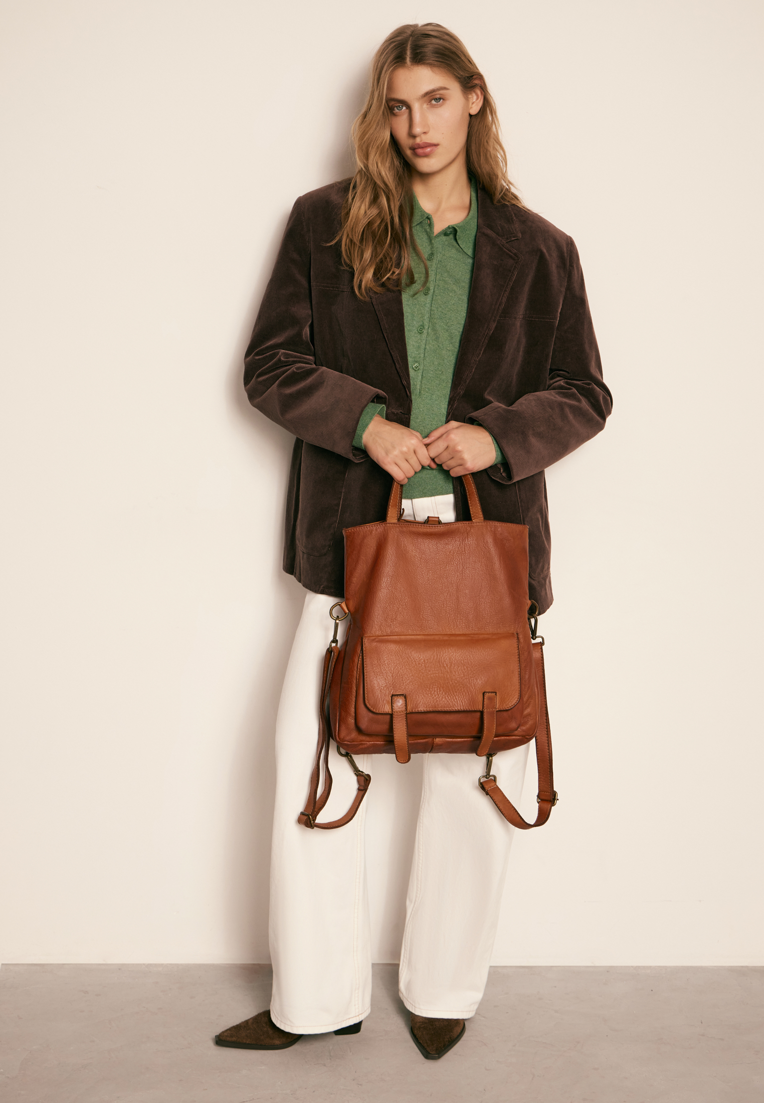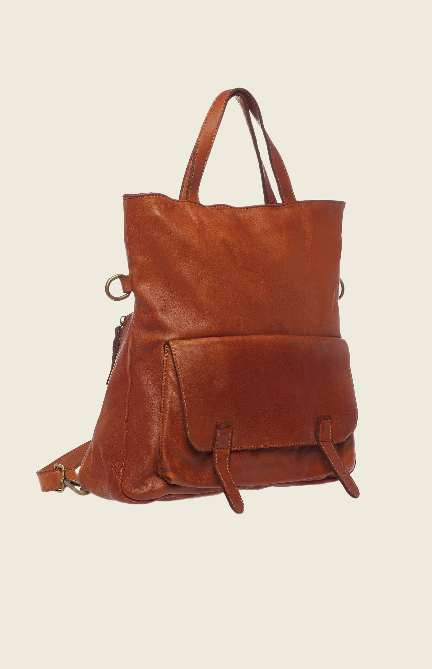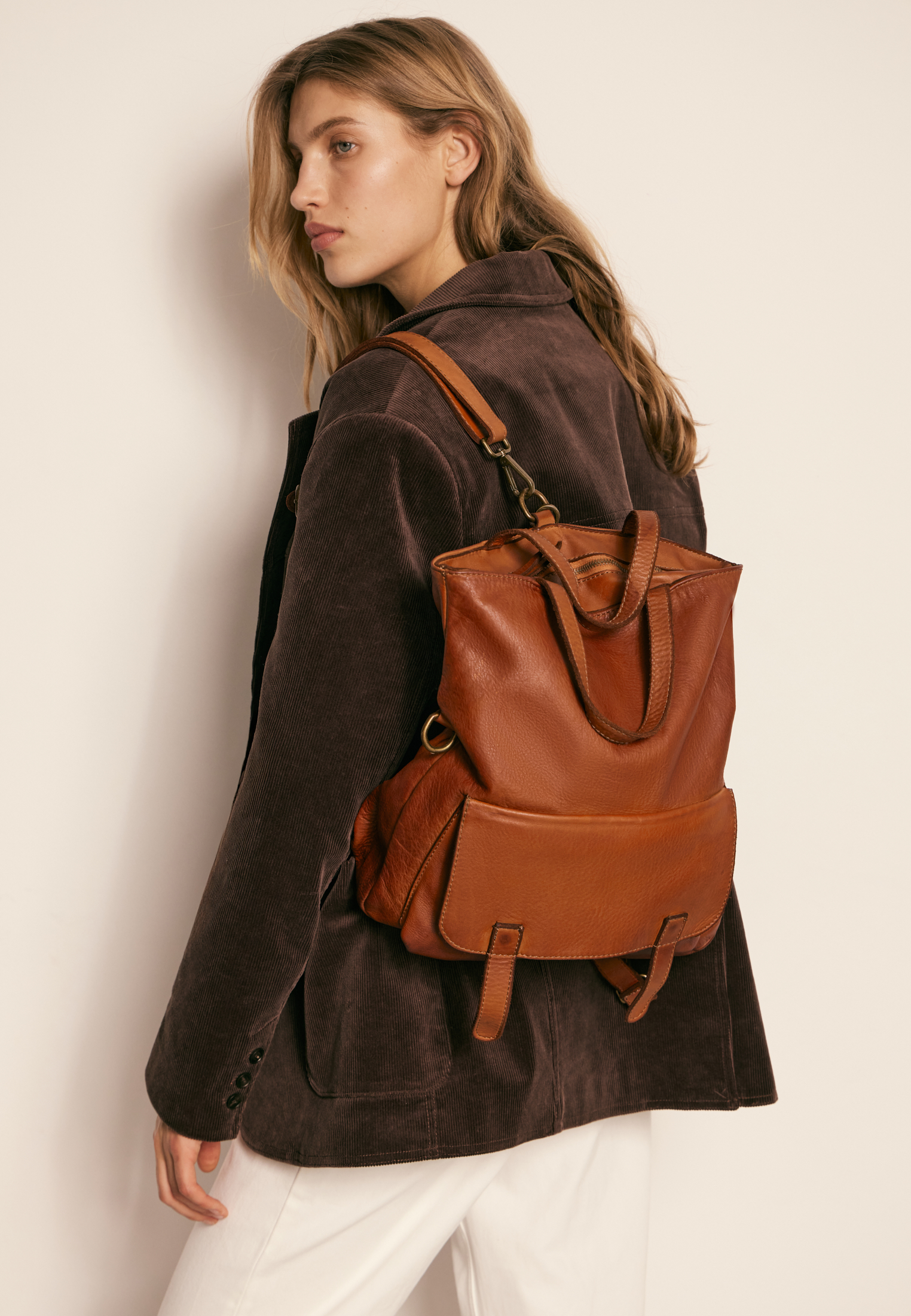 Модель выполнена из необработанной винтажной кожи с естественными неровностями и уникальным паттерном.