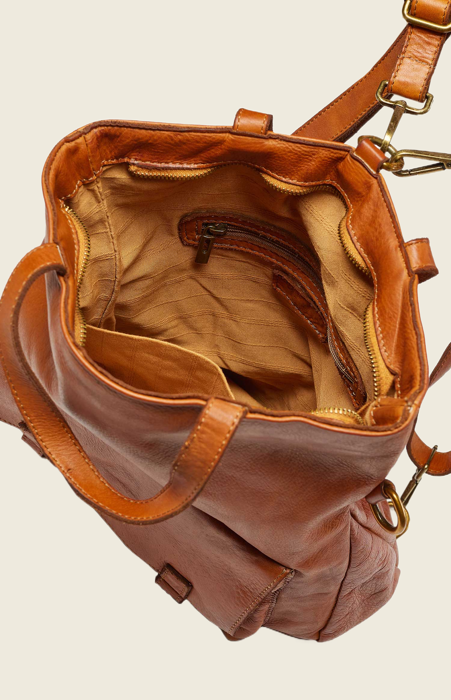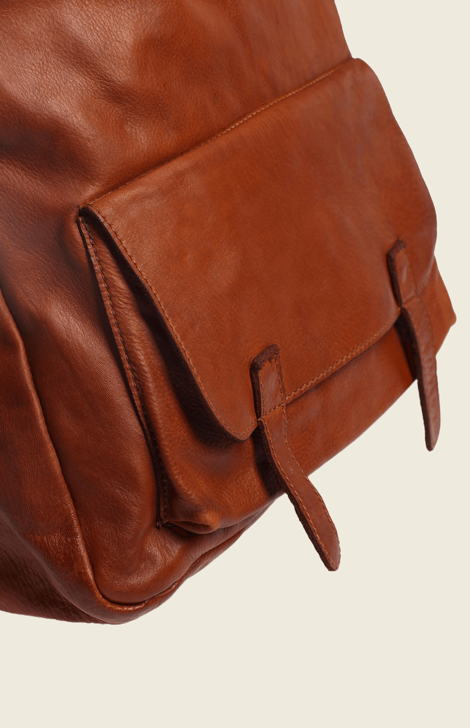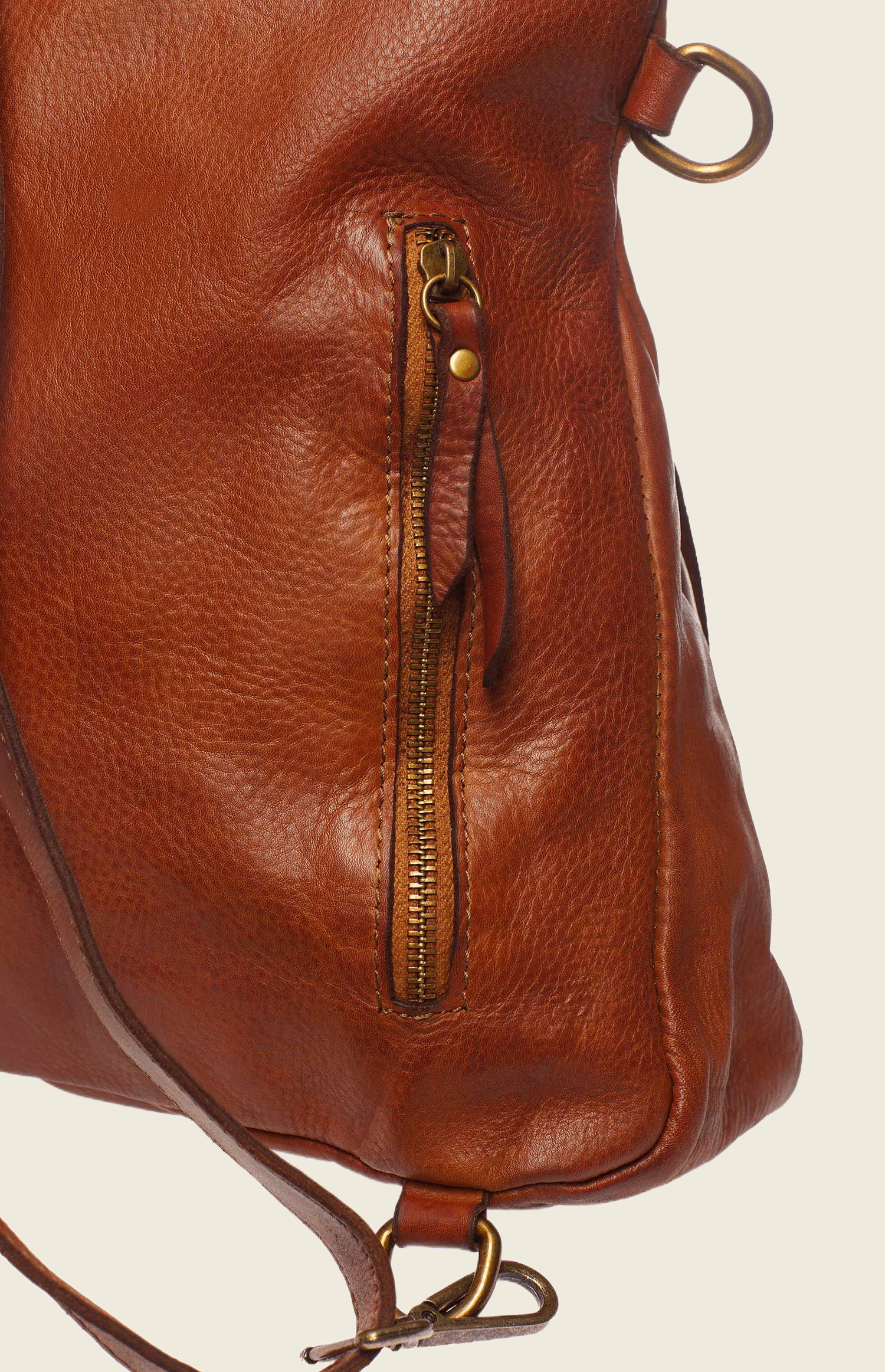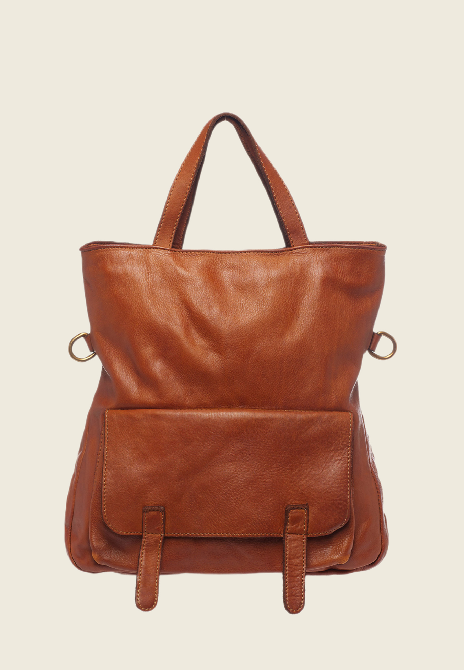 Модель выполнена из необработанной винтажной кожи с естественными неровностями и уникальным паттерном.