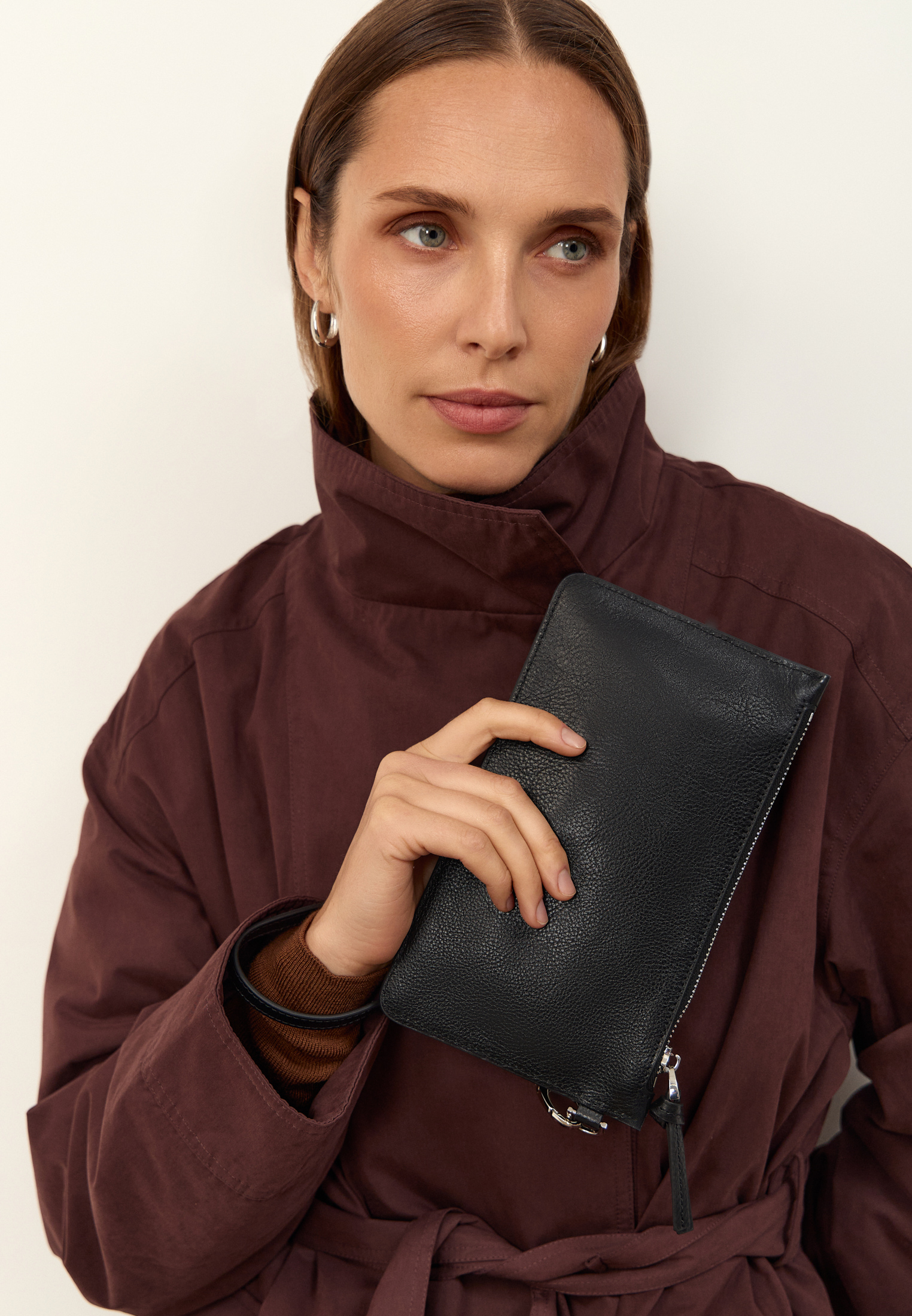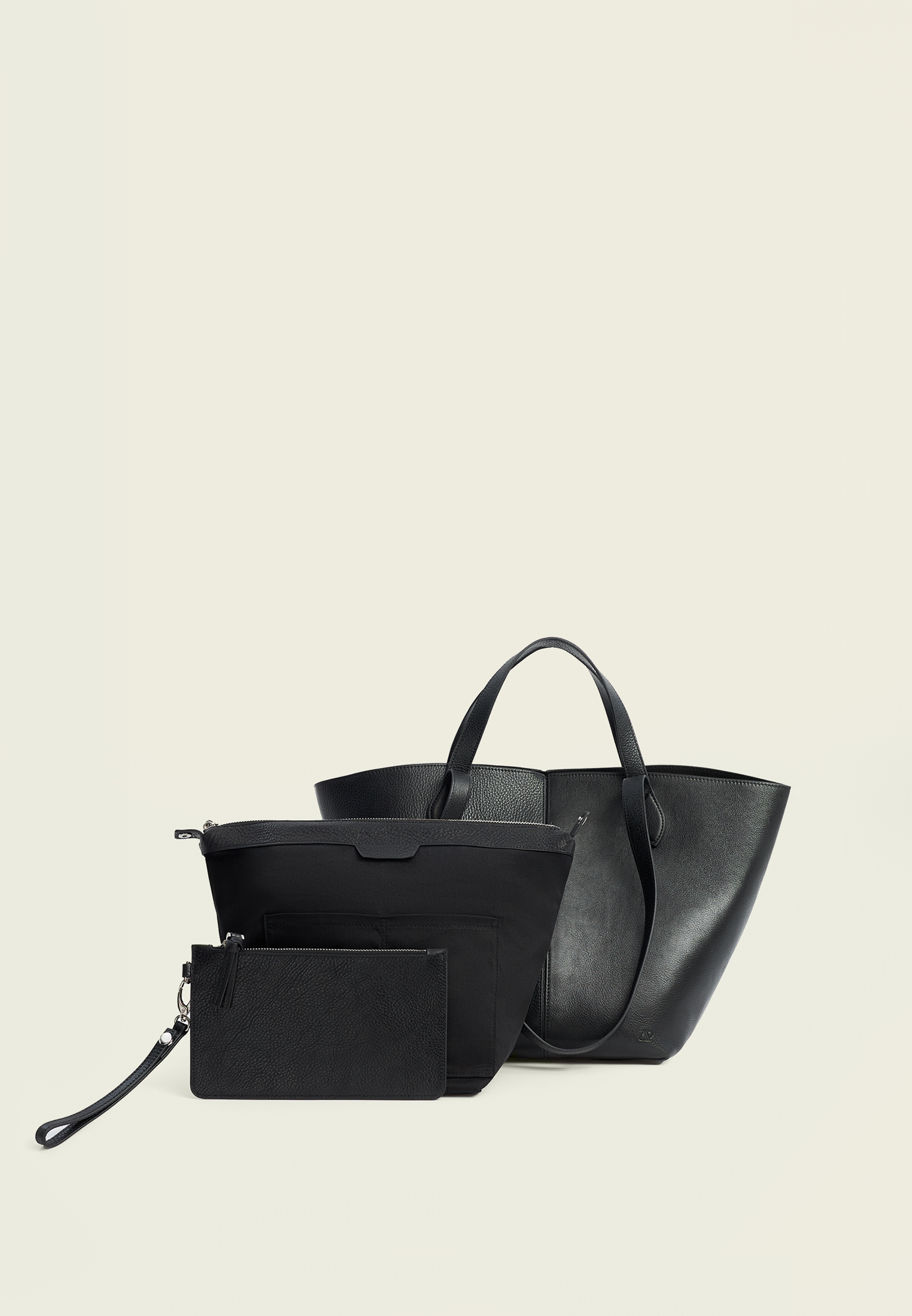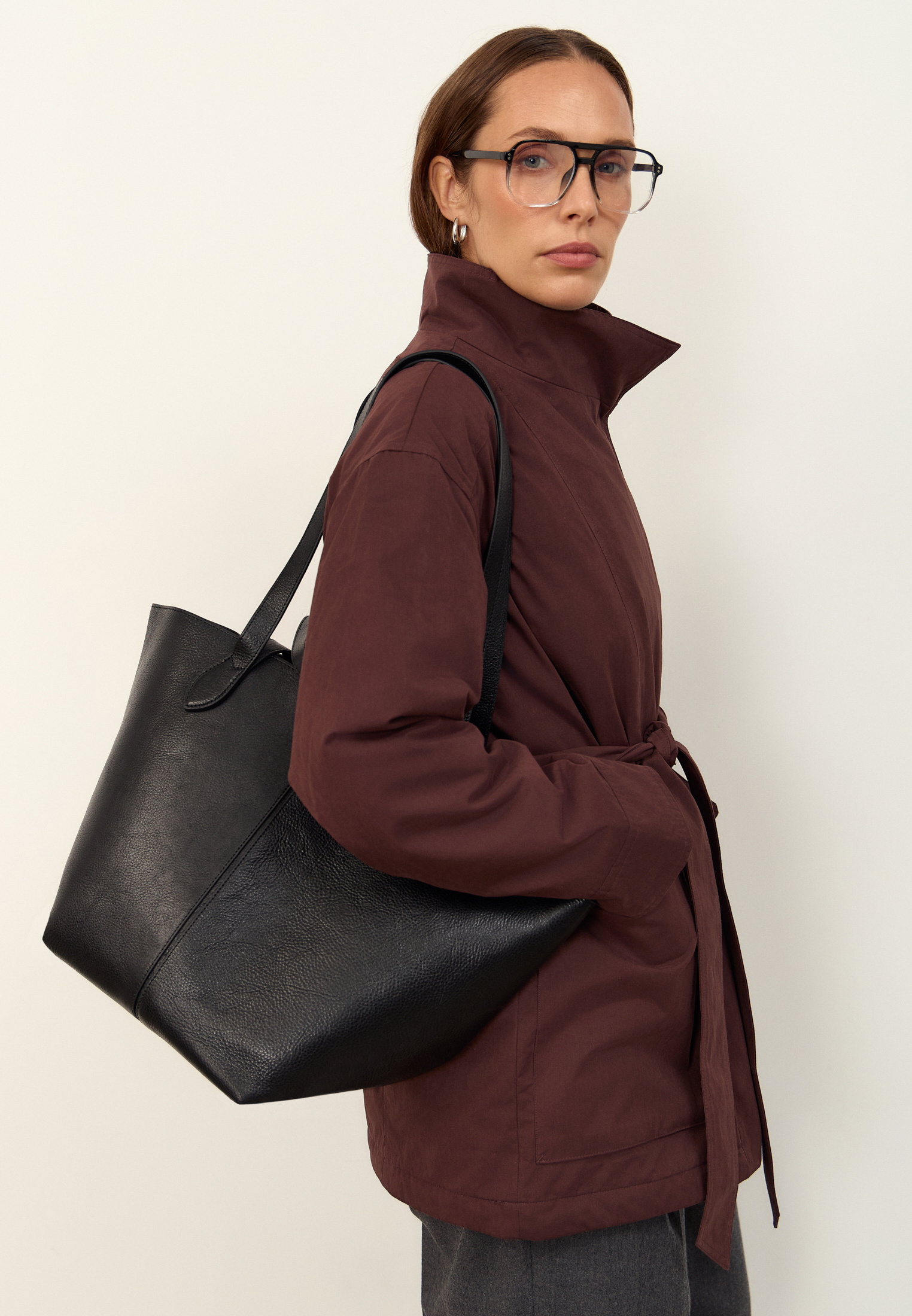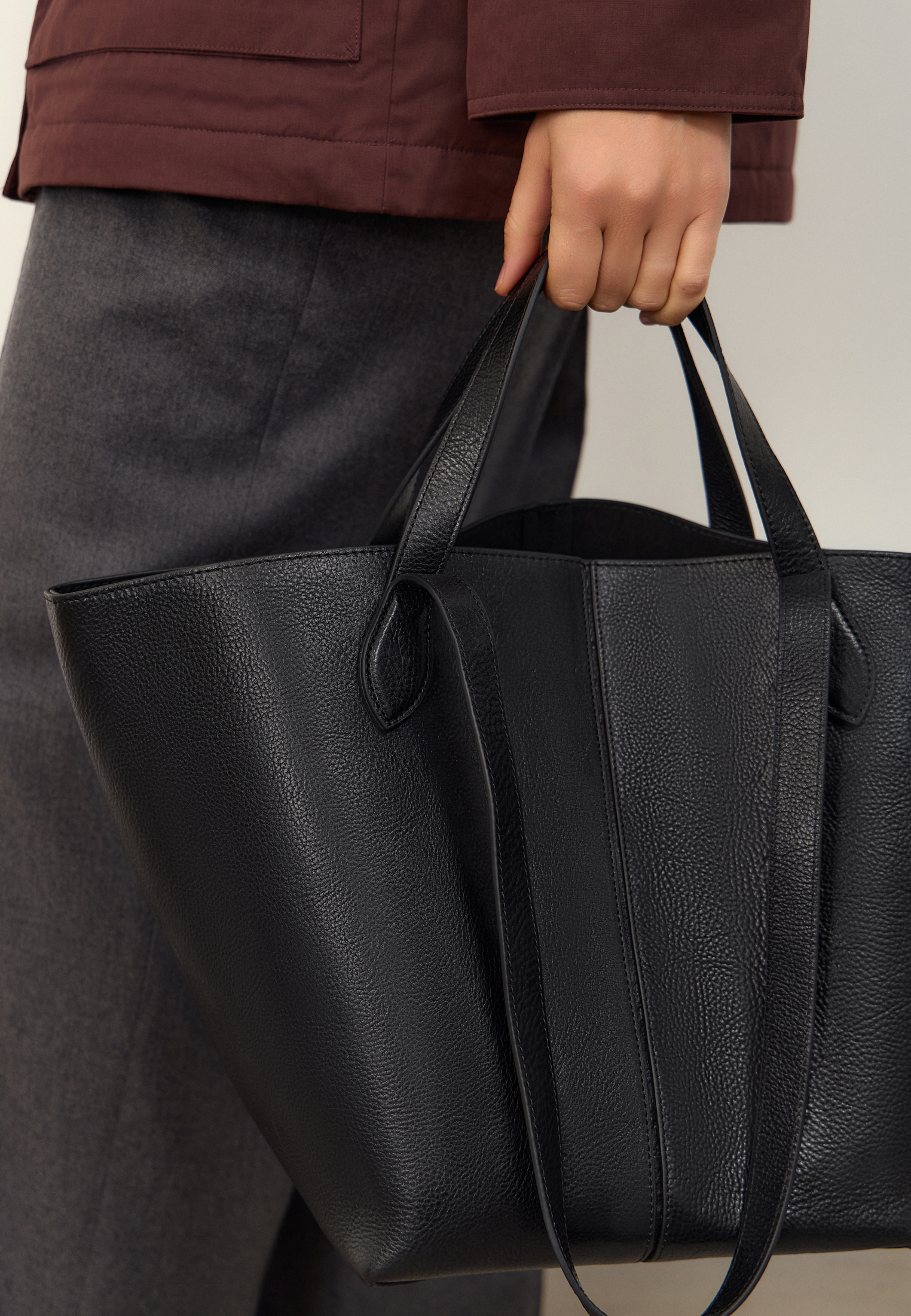 Вместительный шоппер из мягкой натуральной кожи — приятной на ощупь и со временем приобретающей благородную фактуру. В комплекте: сам шоппер, съёмная хлопковая косметичка и кожаный клатч. Оба аксессуара крепятся на кнопки и легко снимаются — их можно использовать как самостоятельные аксессуары.