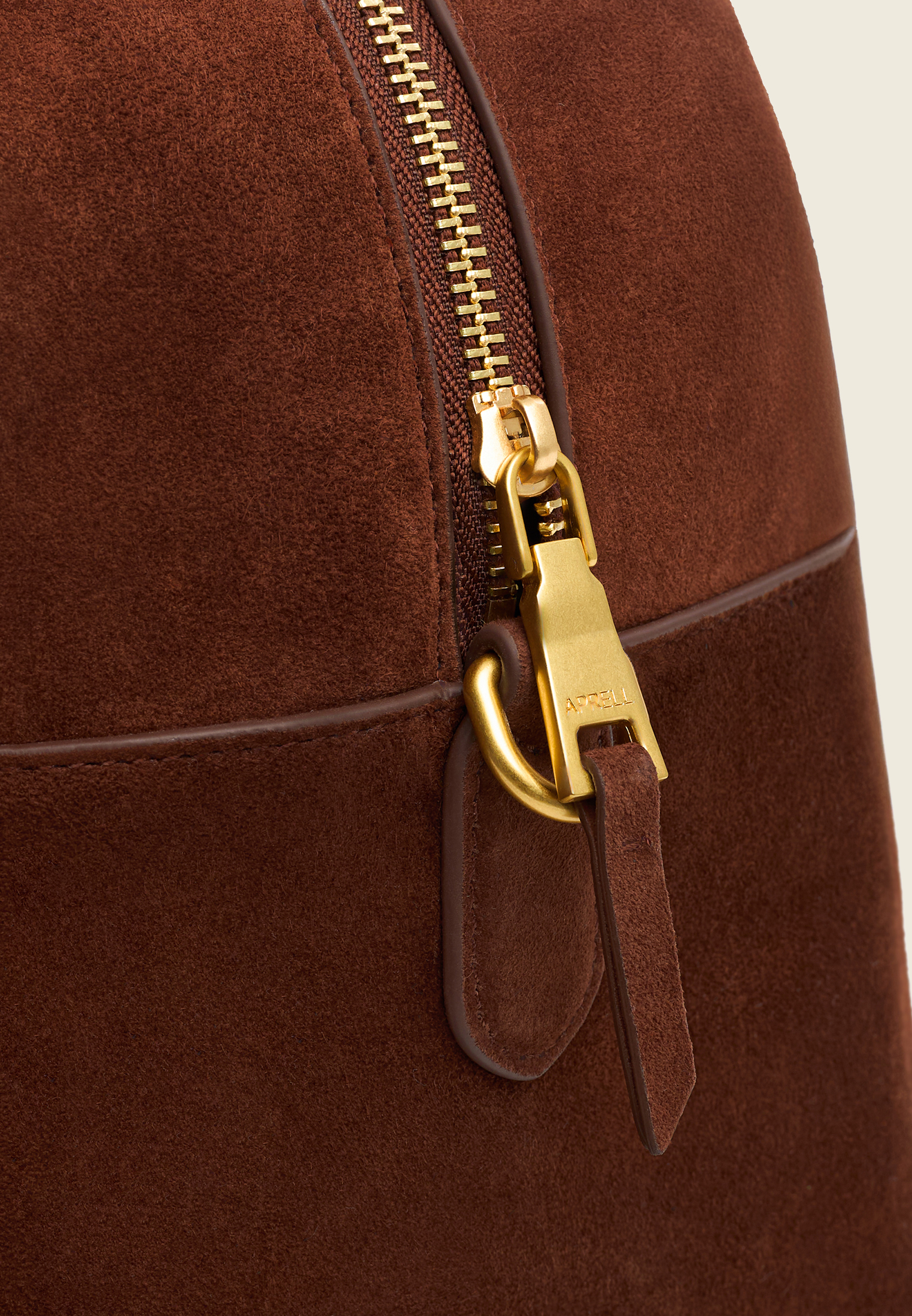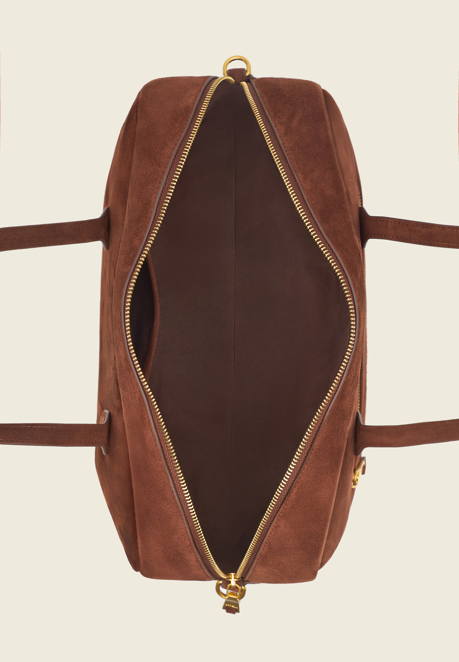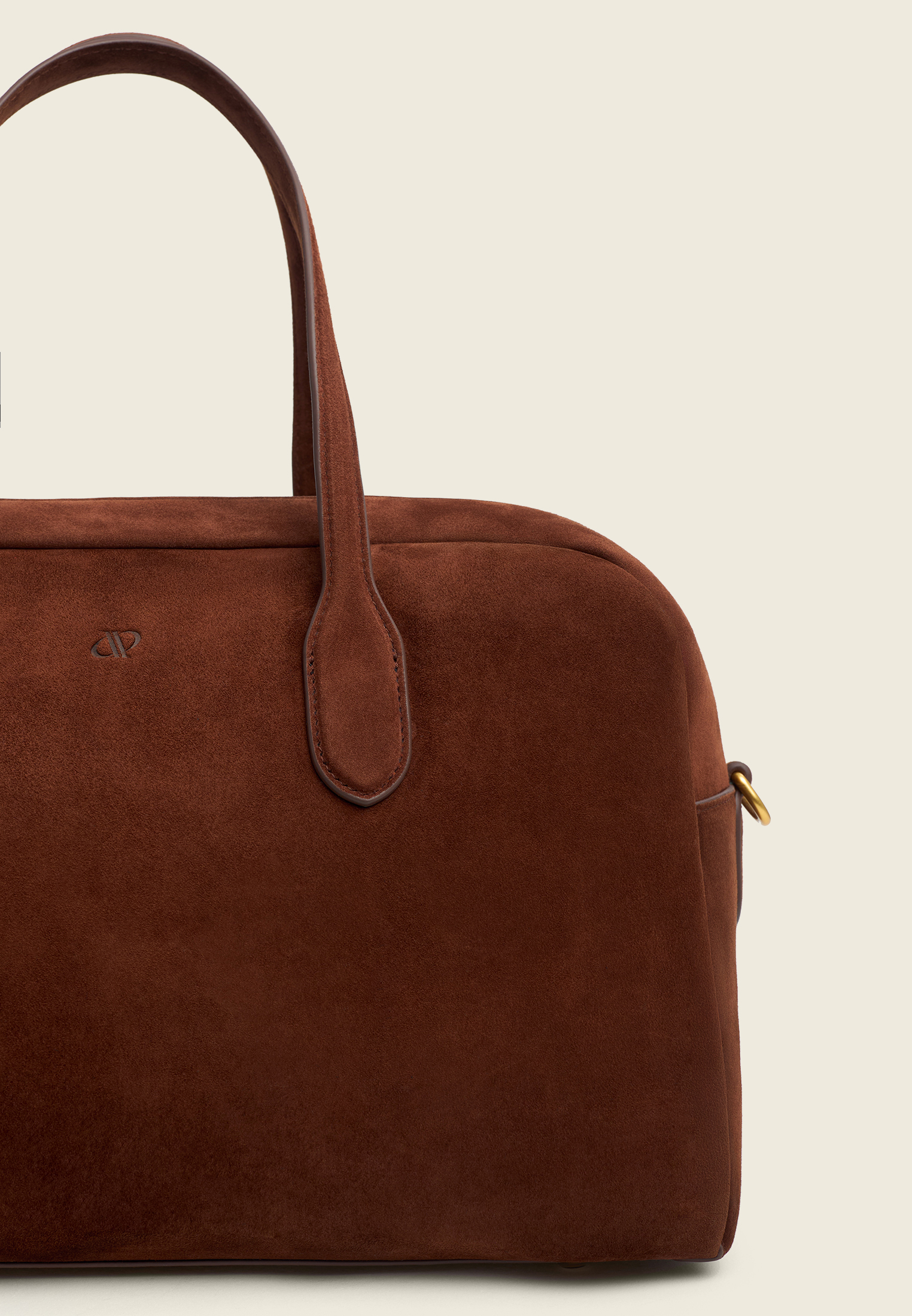 Сдержанная, но выразительная за счёт фактуры — эта сумка сделана из натуральной замши: бархатистой, тёплой, пластичной. Такой материал хочется ощущать под рукой — он мягко подстраивается под образ и особенно приятен на ощупь.