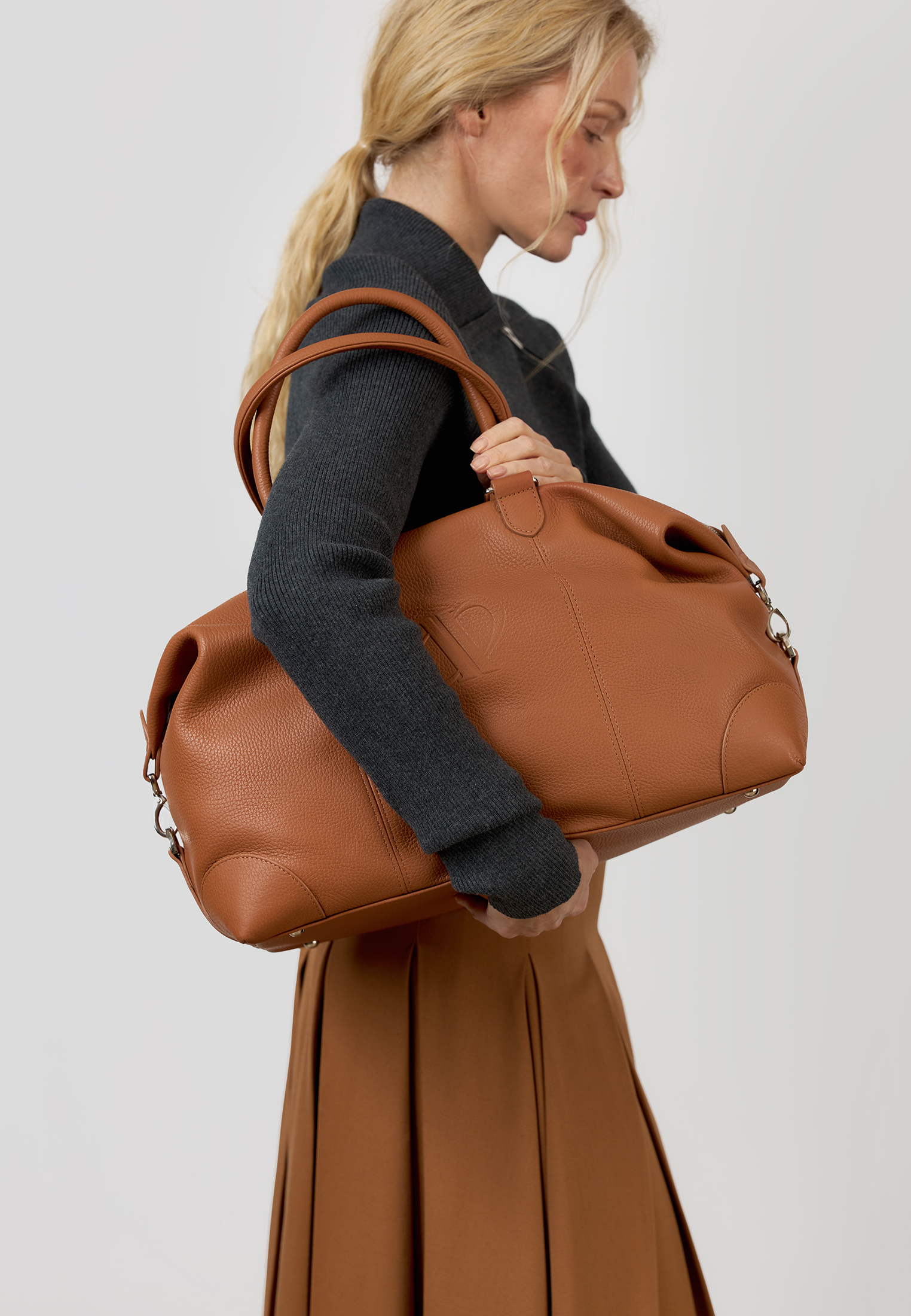Вместительная сумка из мягкой кожи. Возьмите её с собой в путешествие или вечером в спортзал. В комплект входит широкий кожаный ремень, чтобы носить сумку через плечо. Это поможет более бережно распределить нагрузку.