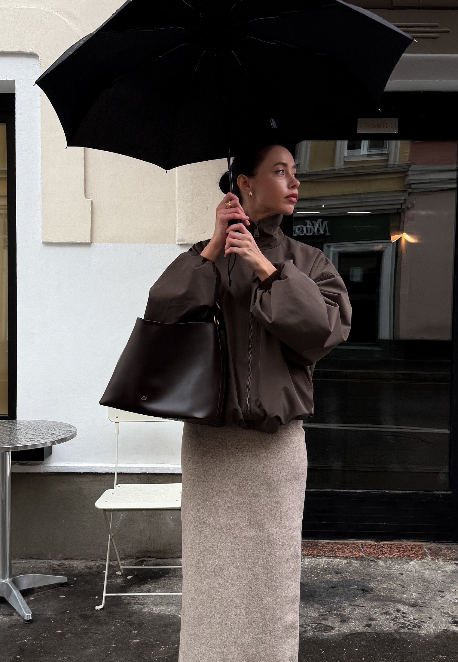 Параметры модели: рост — 178 см., бюст — 84 см., талия — 63 см., бёдра — 92 см.