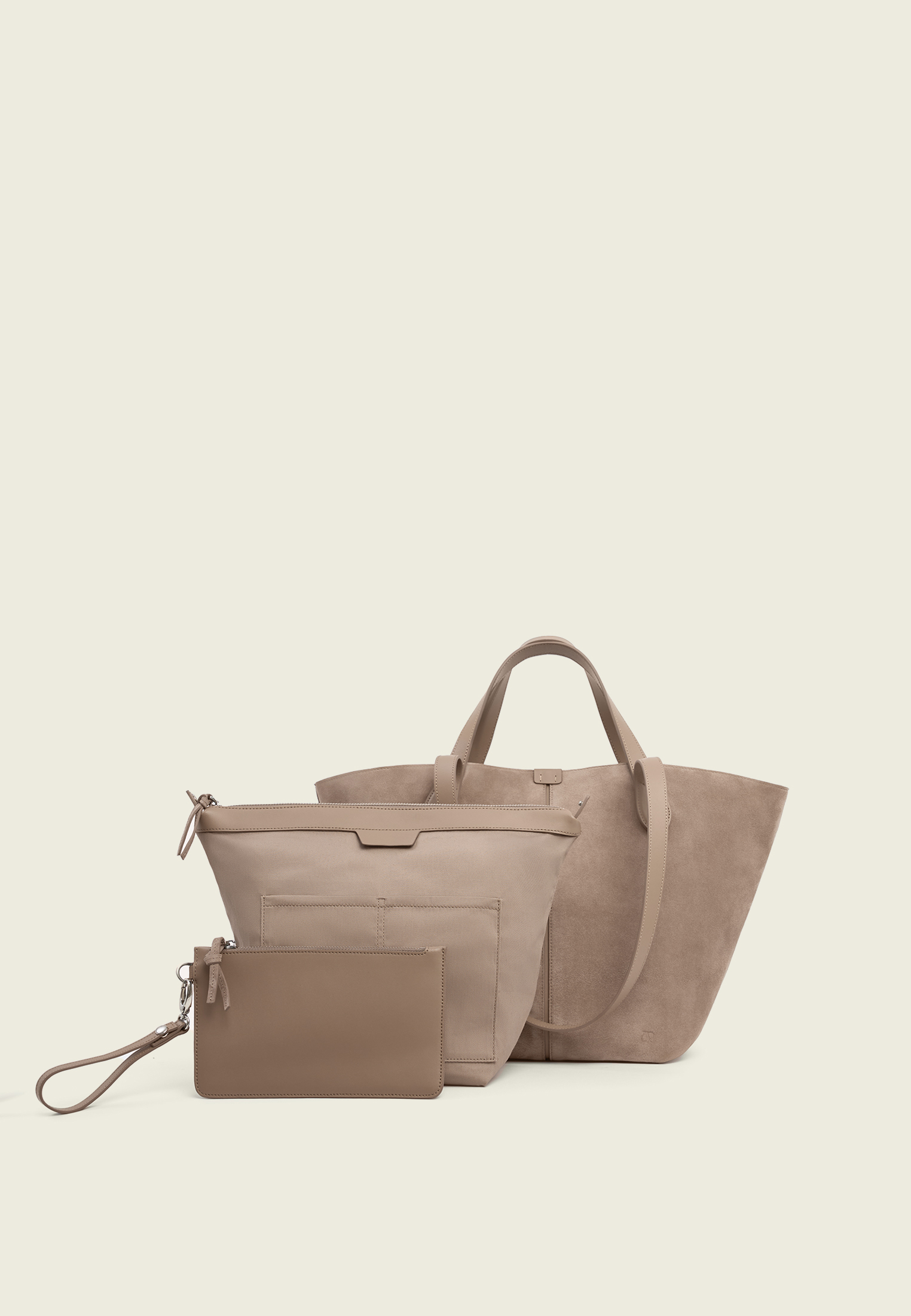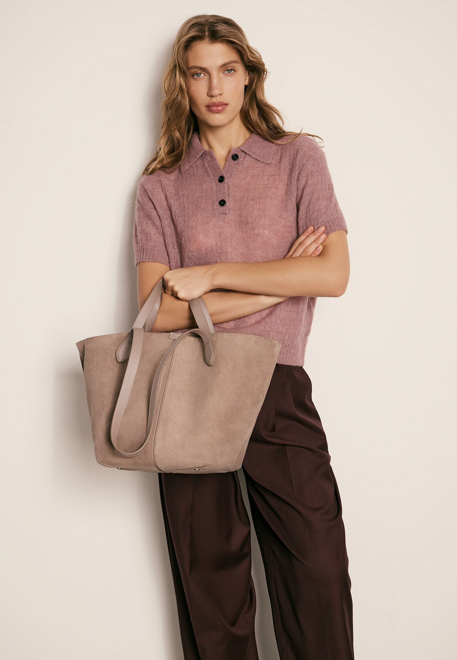 Любимая модель шоппера получила новое воплощение — в натуральном велюре. Мягкий бархатистый материал создаёт утончённый образ, а прочная основа и продуманный функционал делают его таким же практичным, как и кожаная версия.