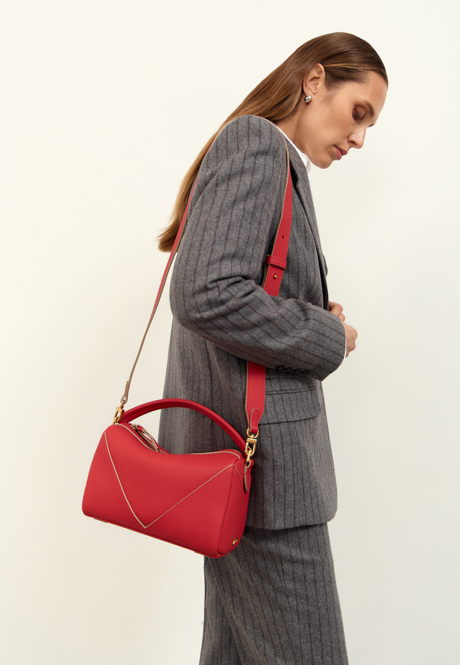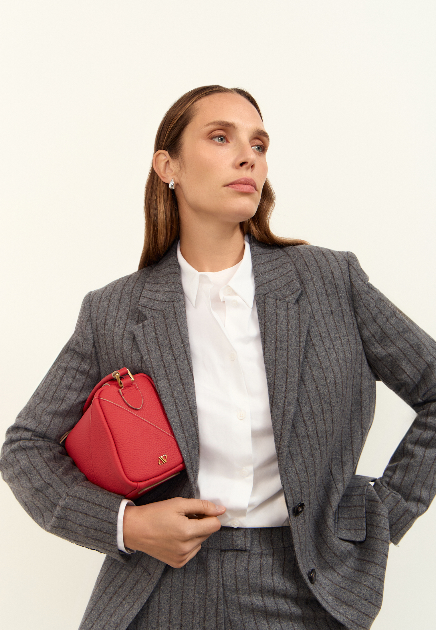 Сумка с чётким геометричным силуэтом отражает актуальный тренд на структурированные формы и продуманный дизайн. Она сочетает минимализм и точность в деталях — чистые линии, сбалансированные пропорции и мягкая зернистая кожа создают гармоничный и выразительный образ.
