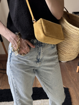 Новое прочтение любимой мини-сумки. Теперь она ещё мягче — за счёт материала с бархатистой текстурой. Компактный формат и одно общее отделение внутри. Длинный регулируемый ремень позволяет носить сумку с комфортом и оставлять руки свободными — для дел, встреч и просто приятных моментов.