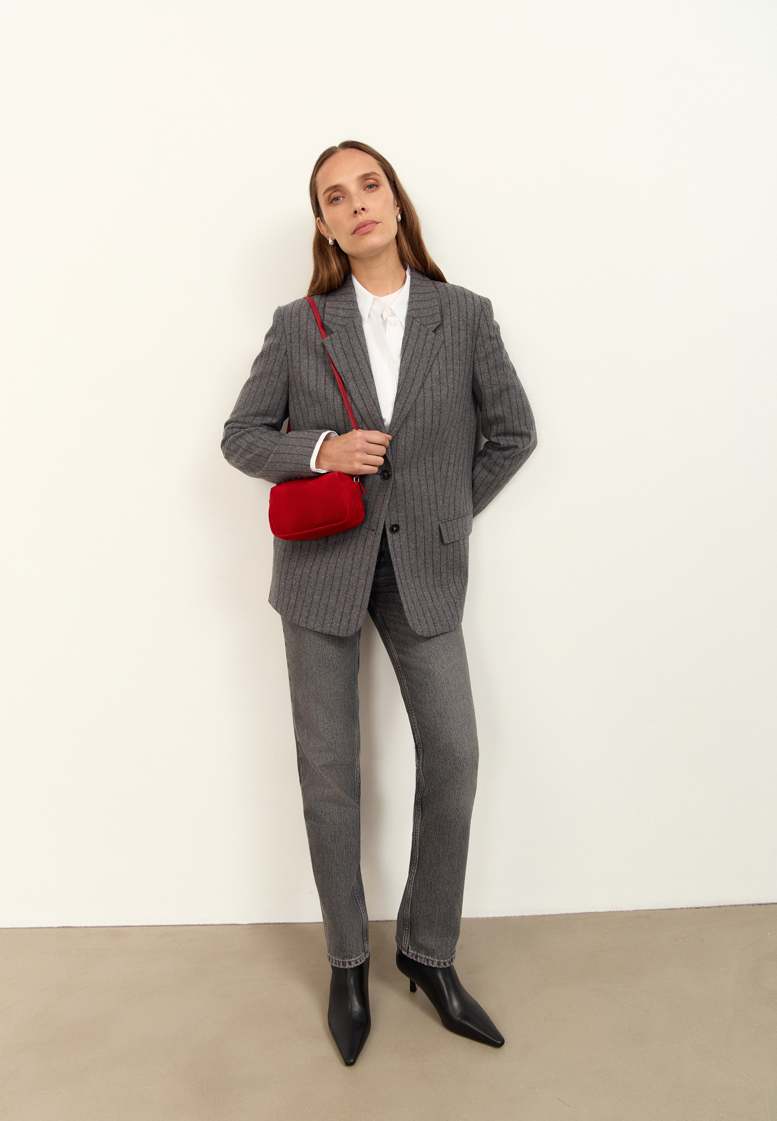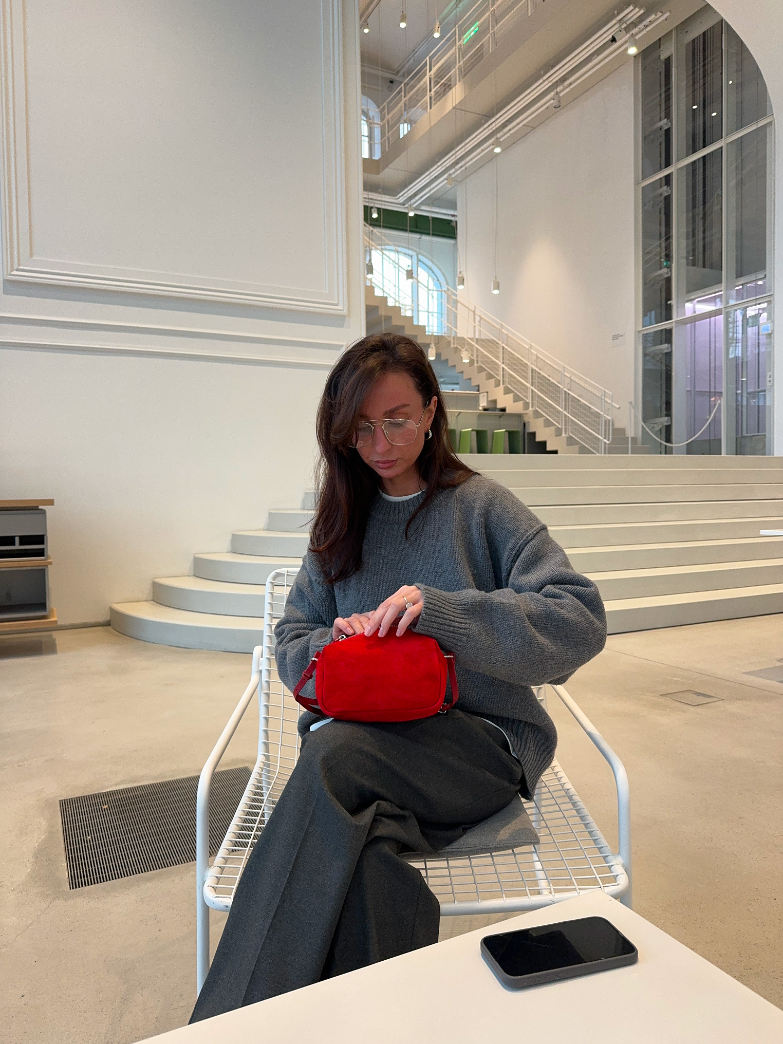 Компактная форма и регулируемый ремень позволяют носить сумку как на плече, так и в руках. Материал подчёркивает глубину цвета и придаёт аксессуару выразительность.