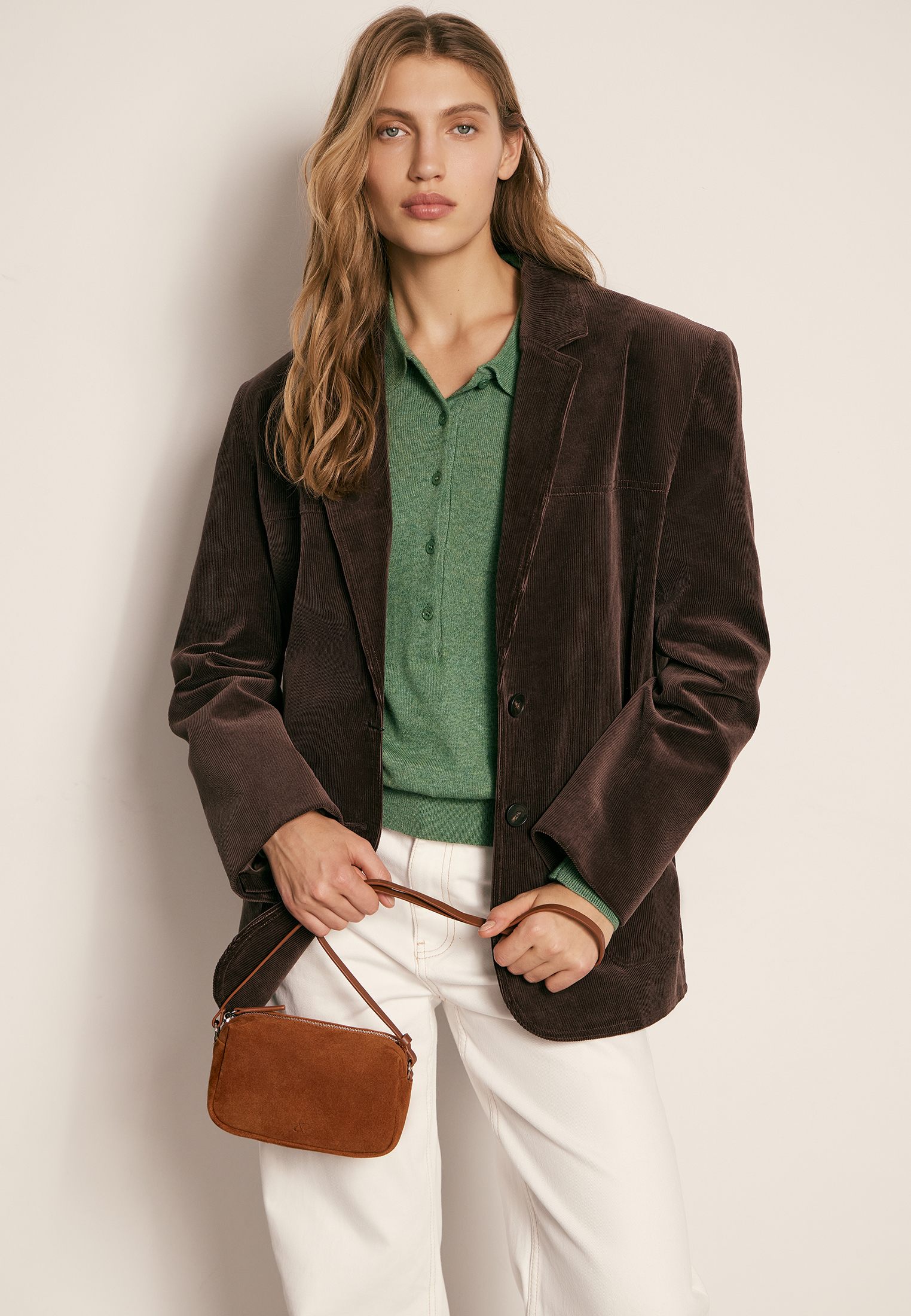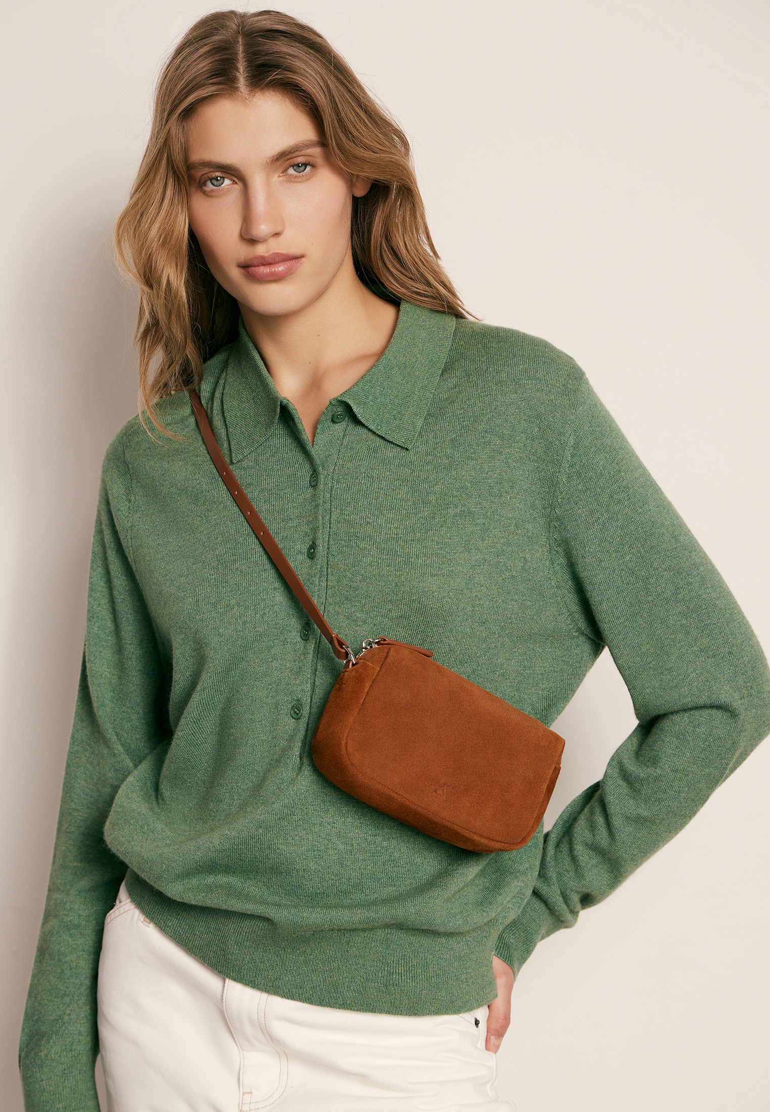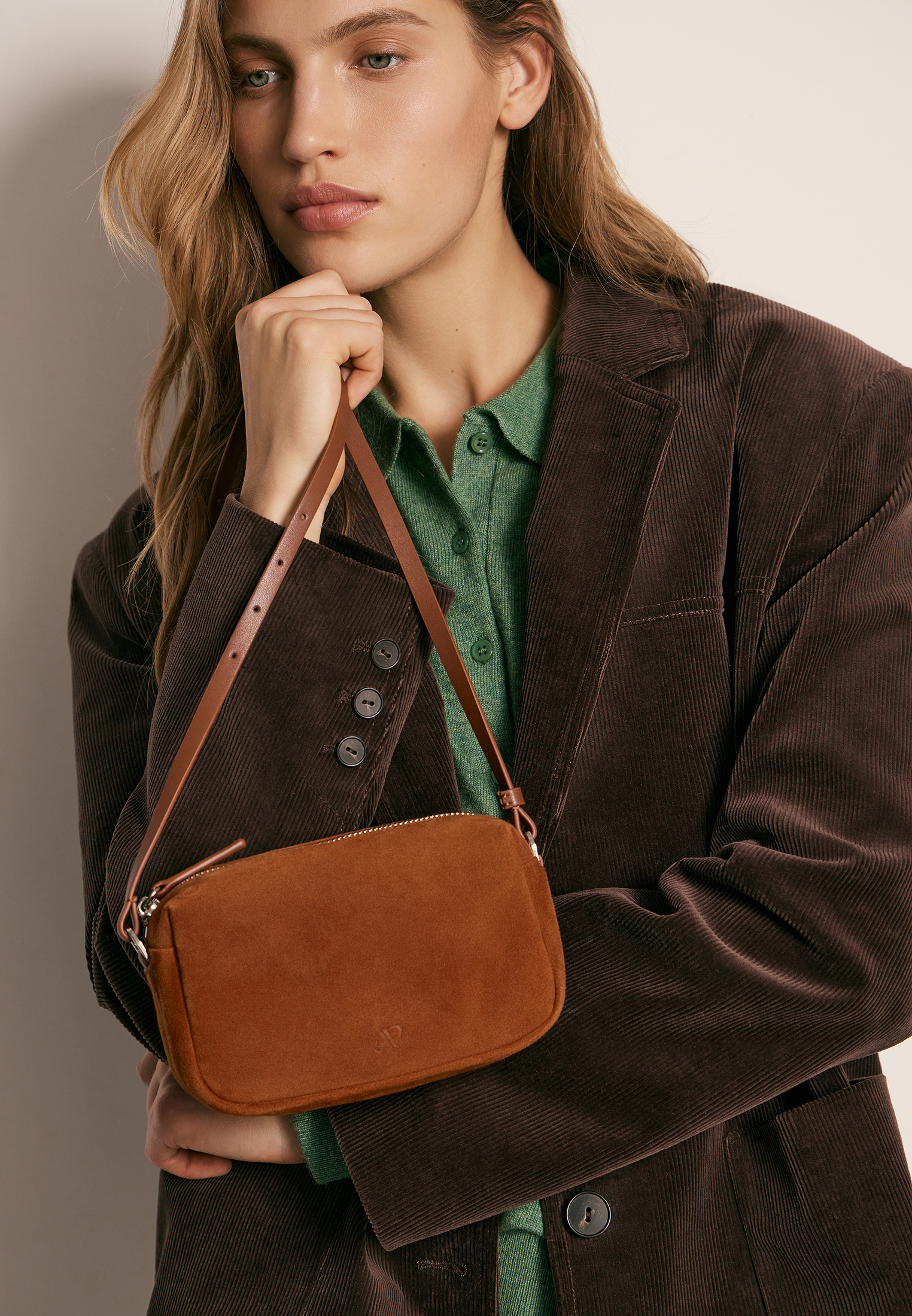 Компактная форма и регулируемый ремень позволяют носить сумку как на плече, так и в руках. Материал подчёркивает глубину цвета и придаёт аксессуару выразительность.