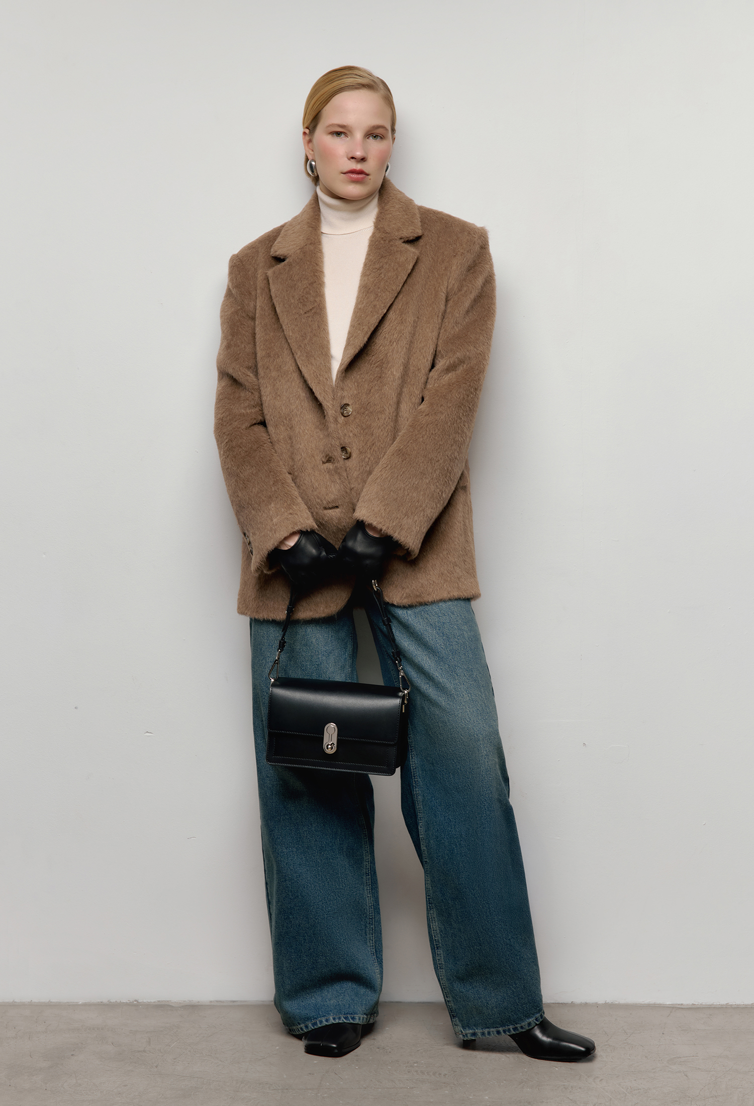 Параметры модели: рост — 173 см., бюст — 86 см., талия — 70 см., бёдра — 95 см.
