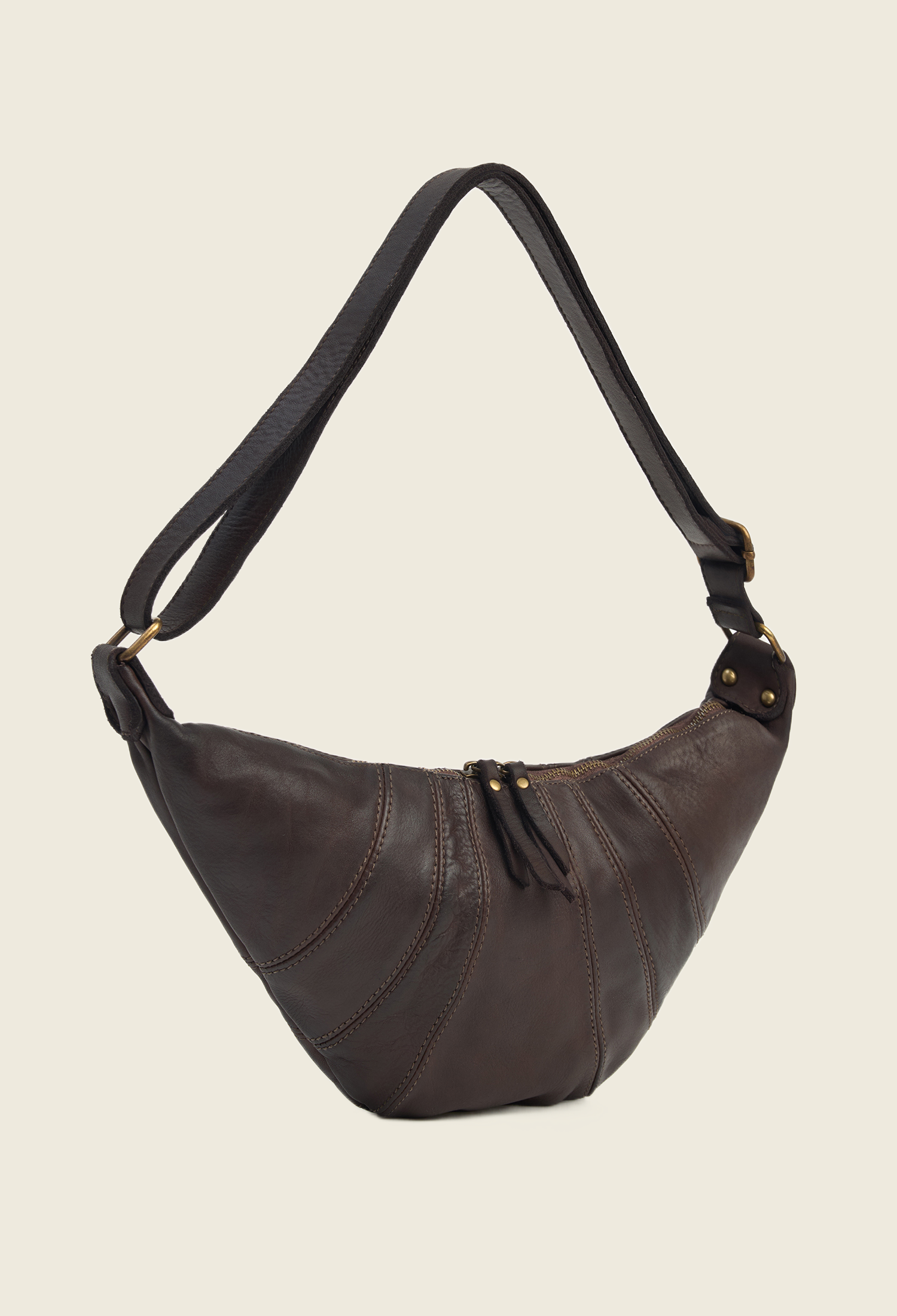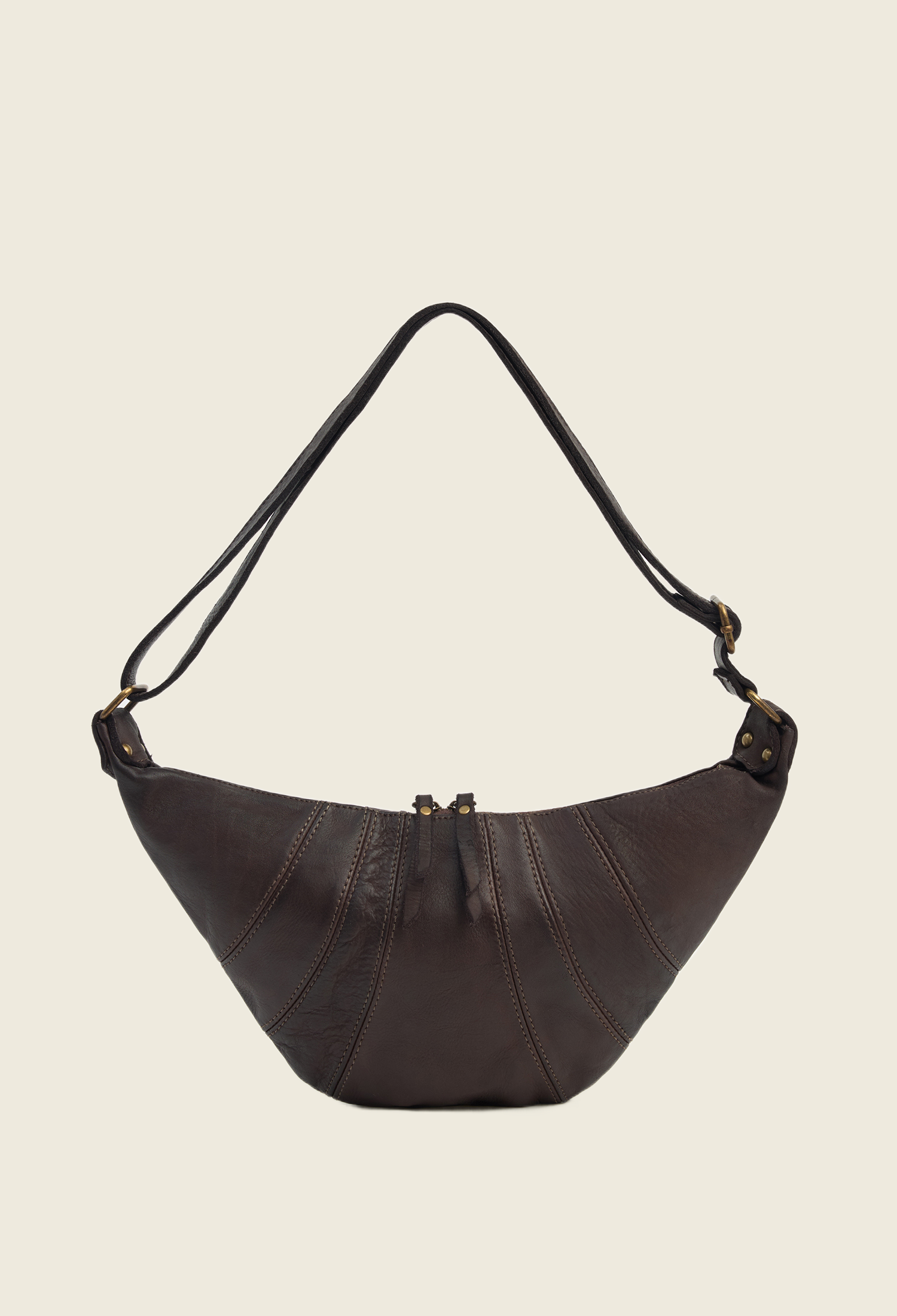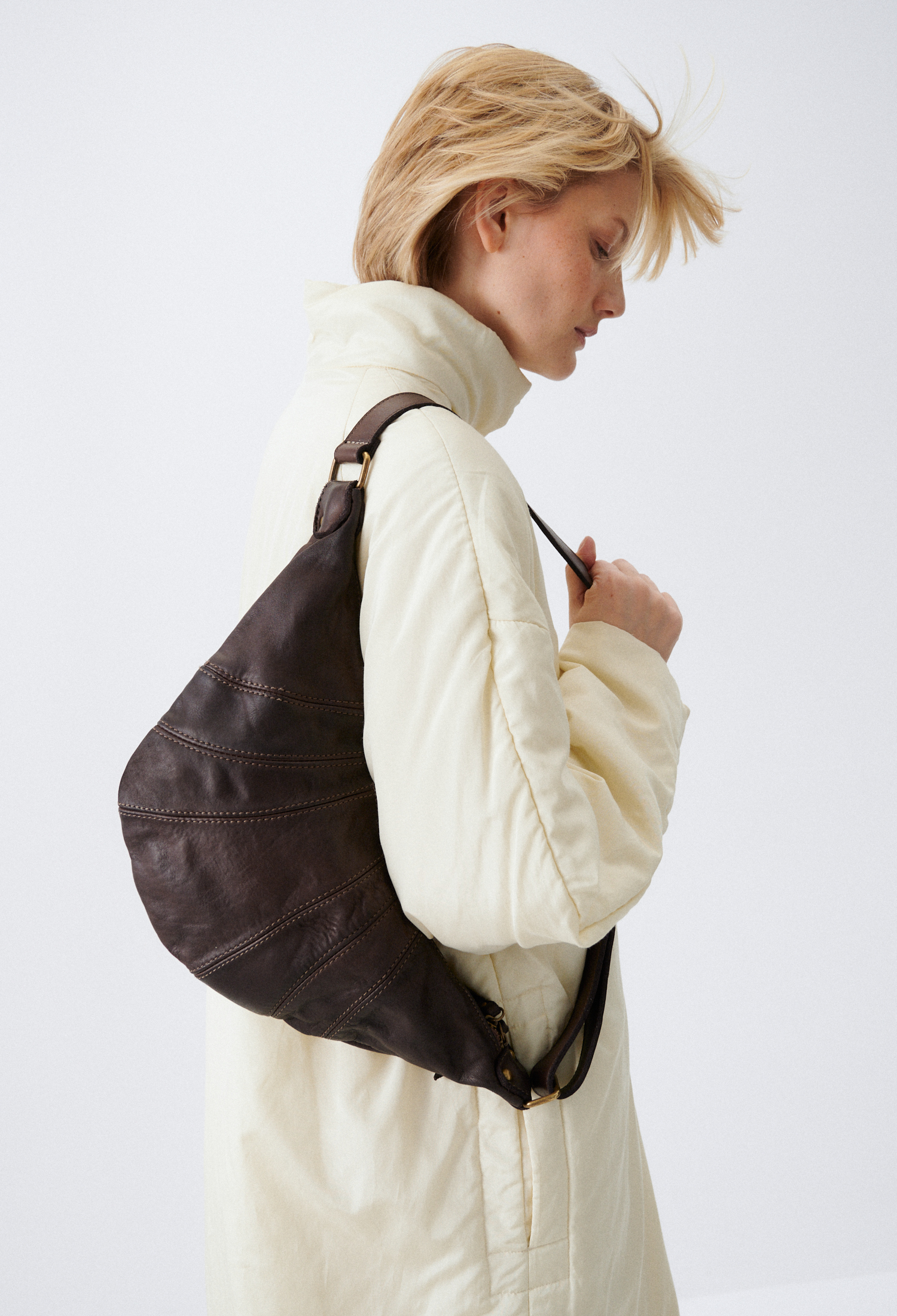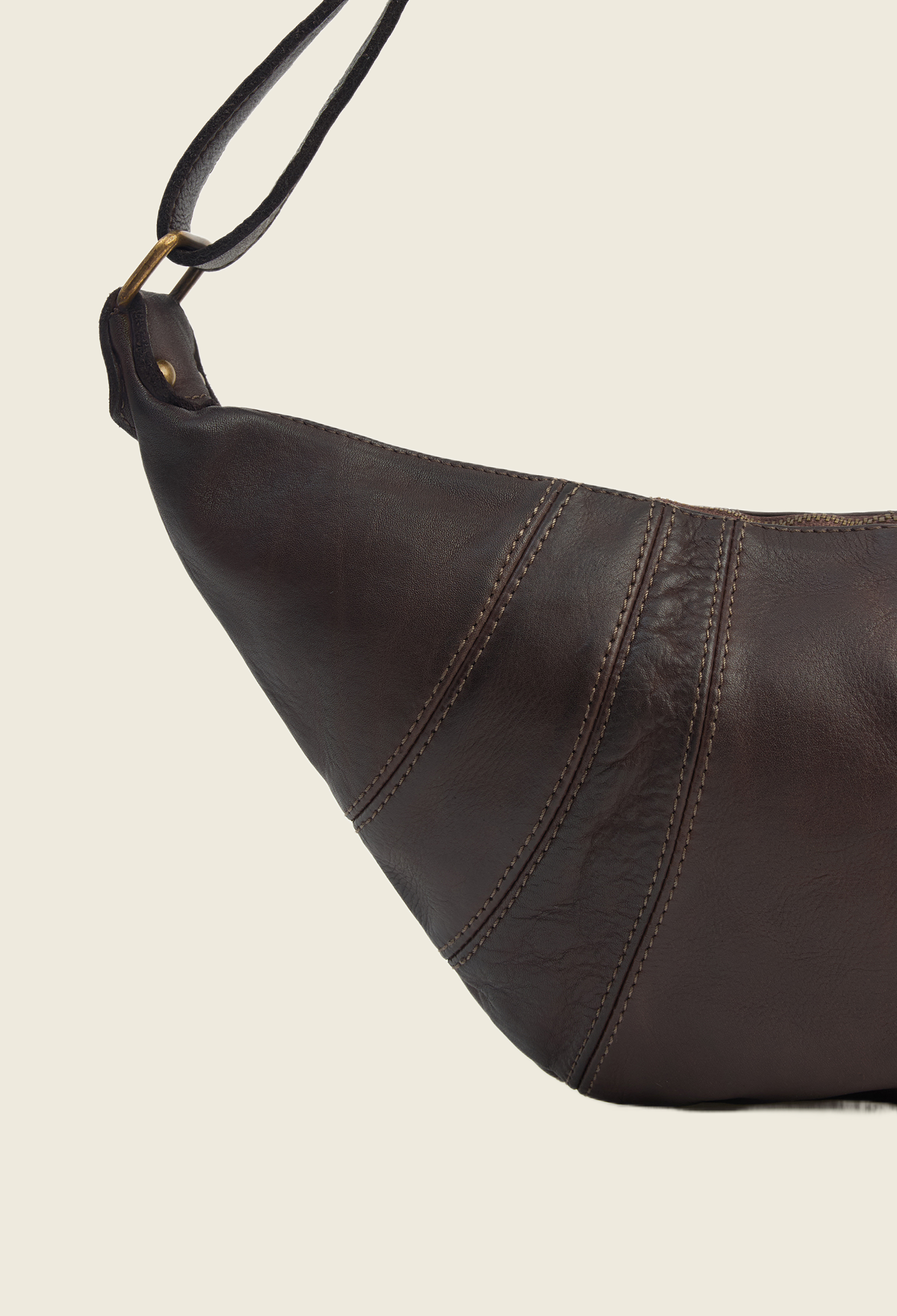 Сумка, вдохновлённая хрустящим французским круассаном, — в мягком прочтении и округлой форме. Мягкая не только по форме, но и на ощупь: модель выполнена из необработанной винтажной кожи, которая со временем приобретает ещё более интересный, уникальный оттенок.