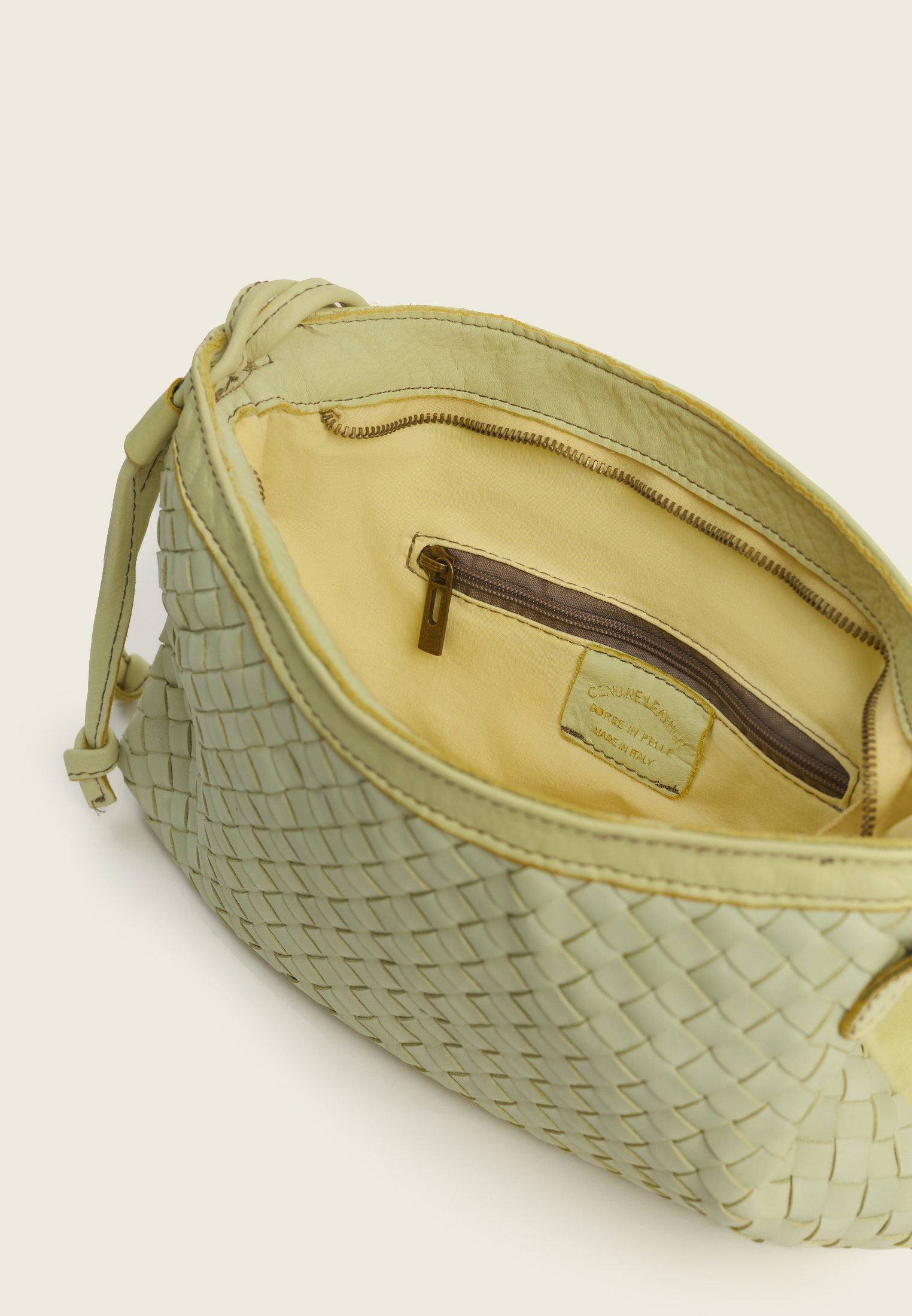 Модель выполнена из мягкой кожи с объёмным плетением. Фактура добавляет сумке выразительности без лишних деталей и делает её интересной даже в простых повседневных образах.