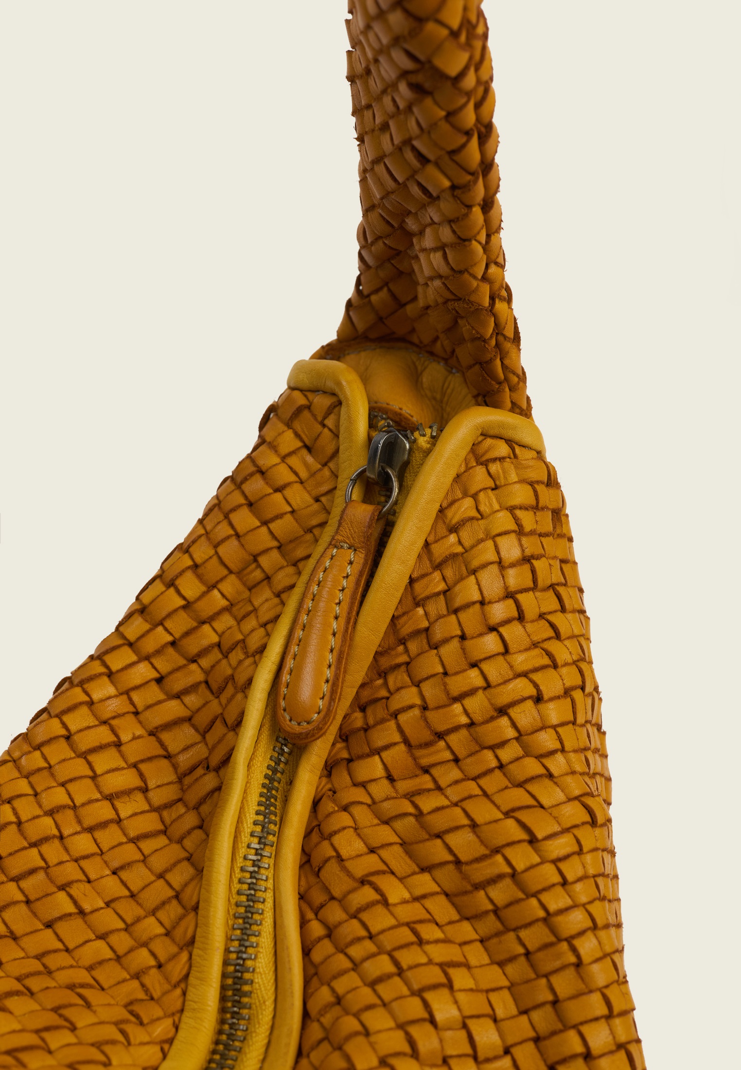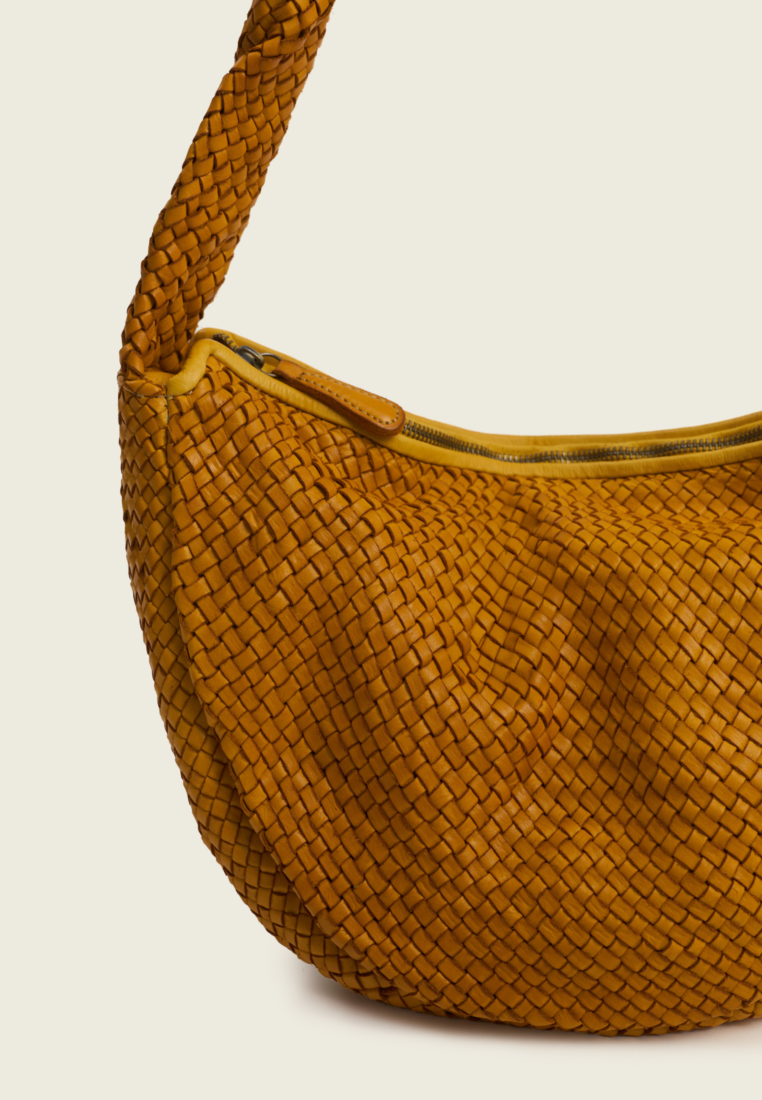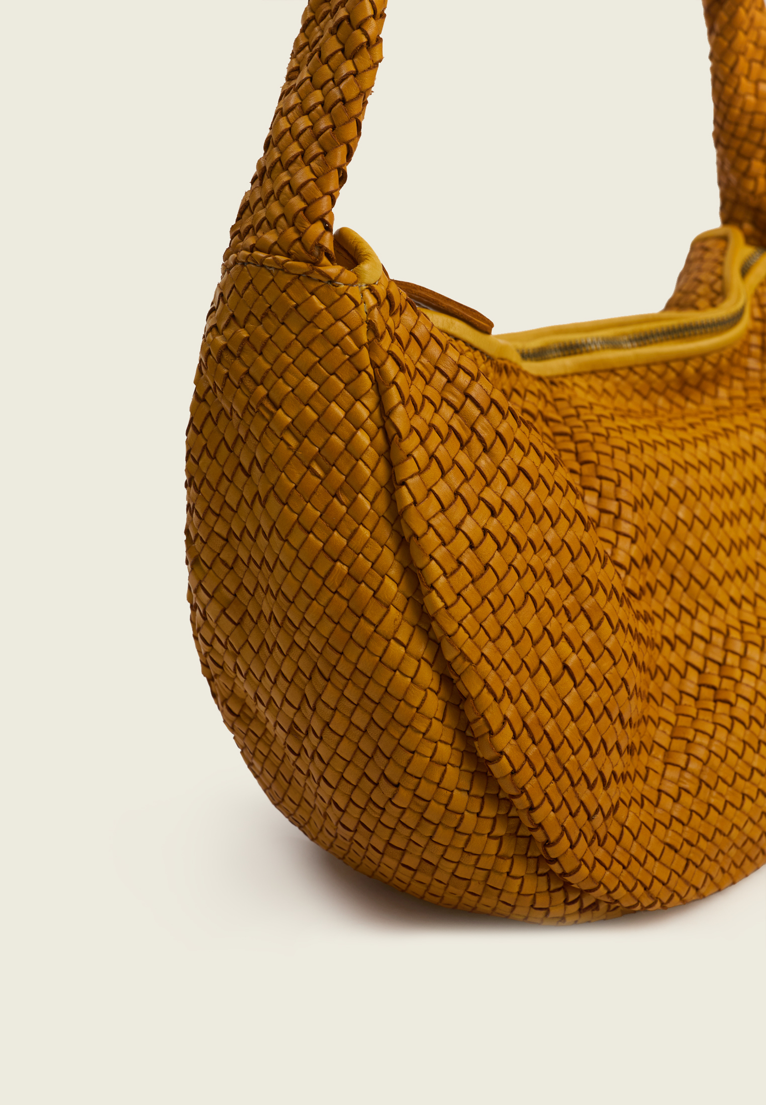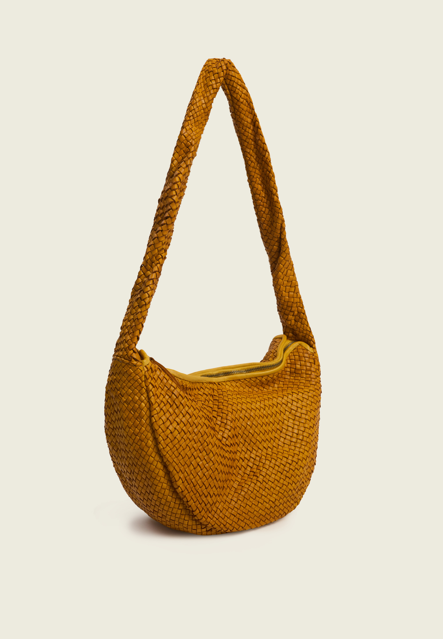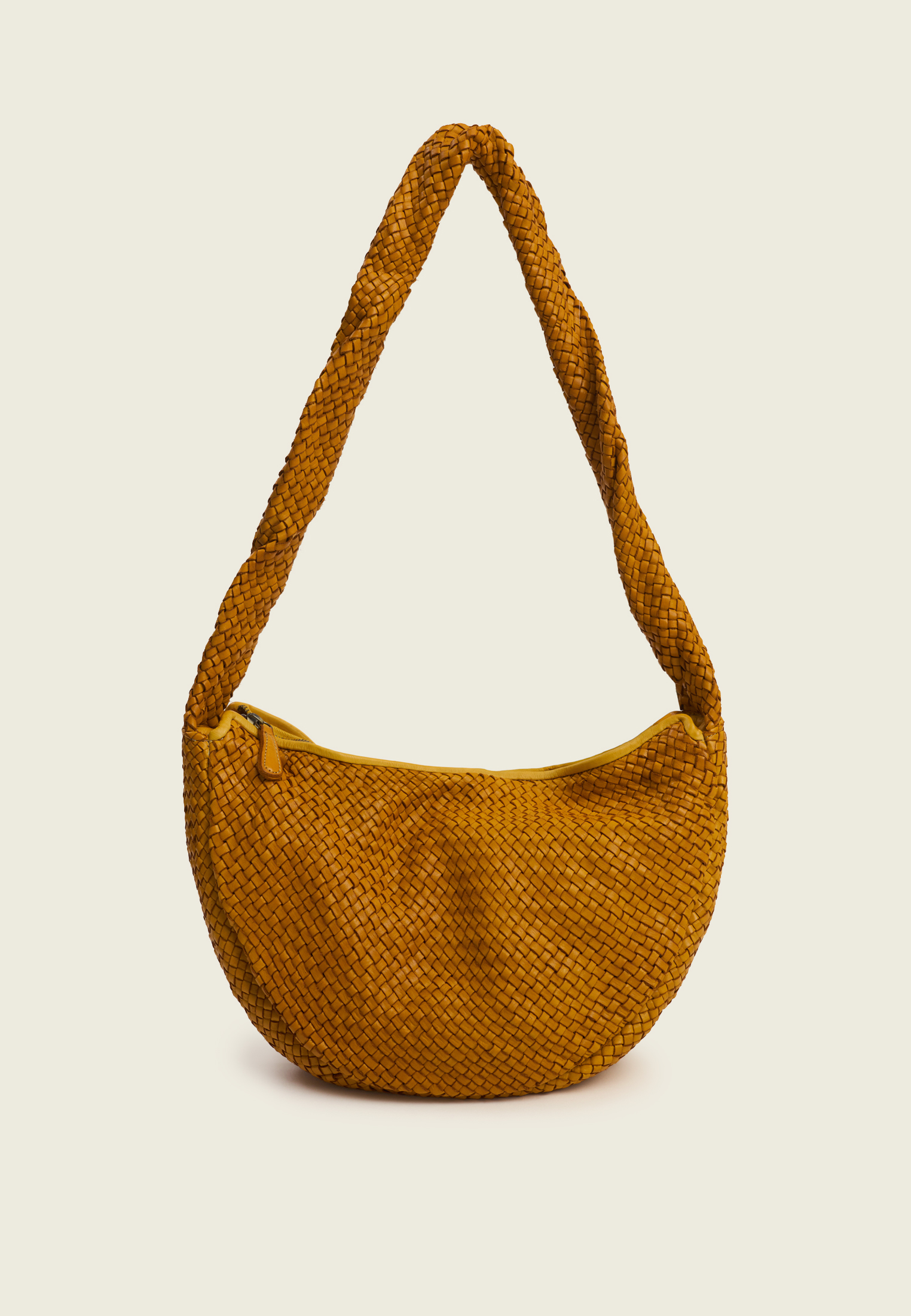 Сумка-хобо из плетёной натуральной кожи. Округлая форма и широкая ручка создают мягкий, расслабленный силуэт и делают модель удобной для ношения на плече.