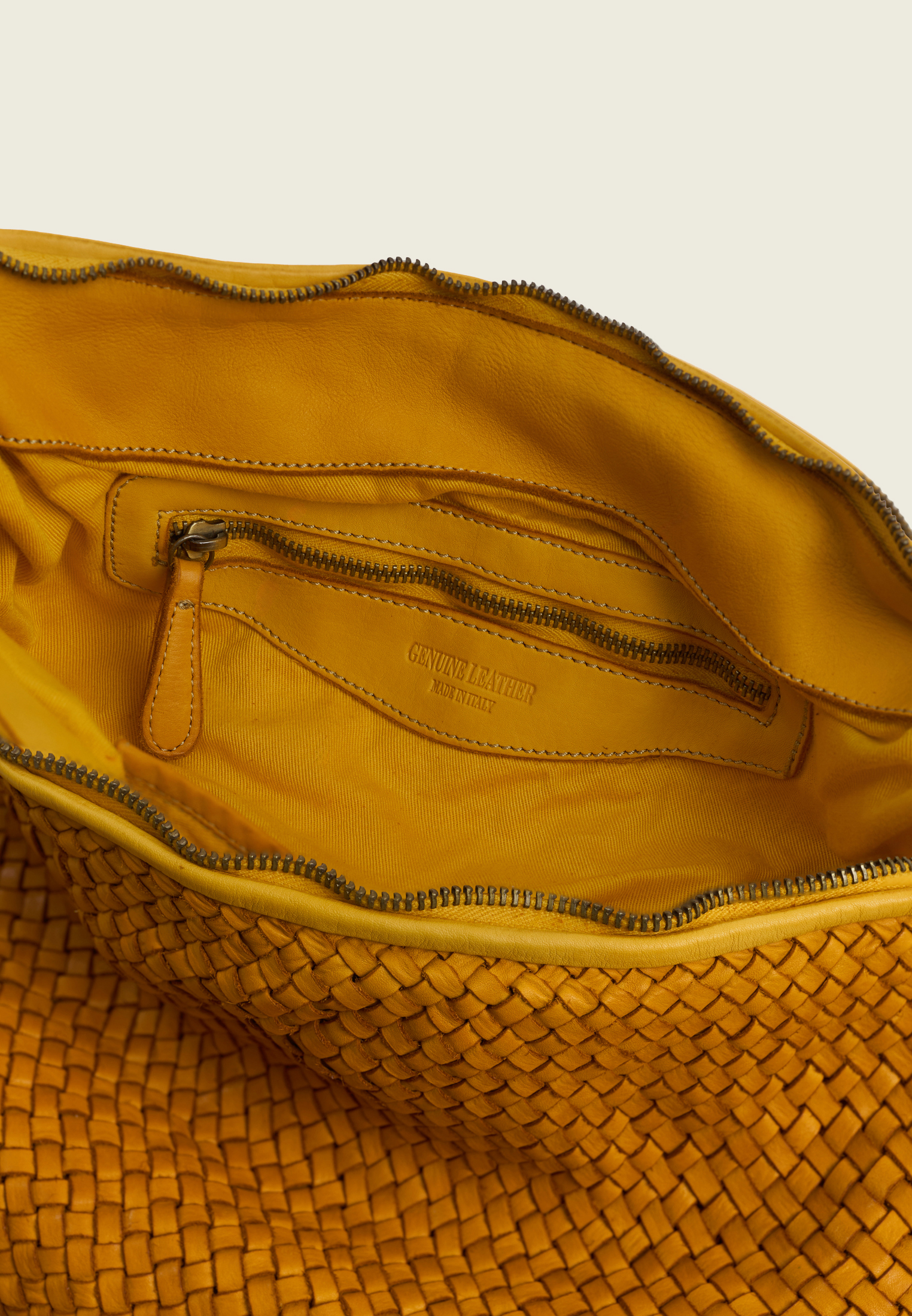 Внутри — одно вместительное отделение и карман на молнии для мелочей. Плетение делает сумку выразительной, но не перегружает образ: она легко вписывается в повседневный гардероб и подходит для разных сезонов.