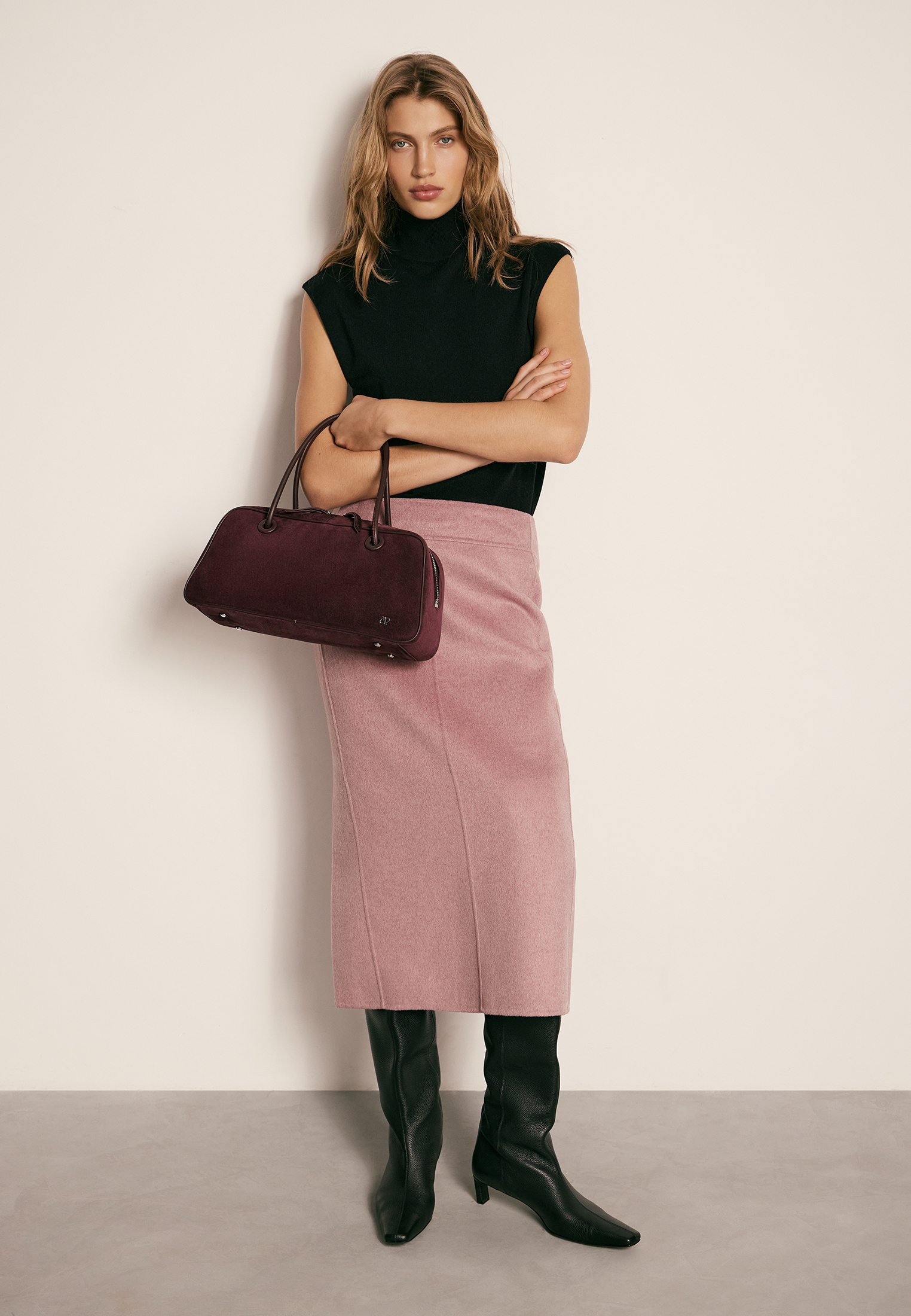 Сумка с аккуратной овальной формой и кожаными ручками в тон. Велюр приятно ложится в руку и добавляет образу глубины.