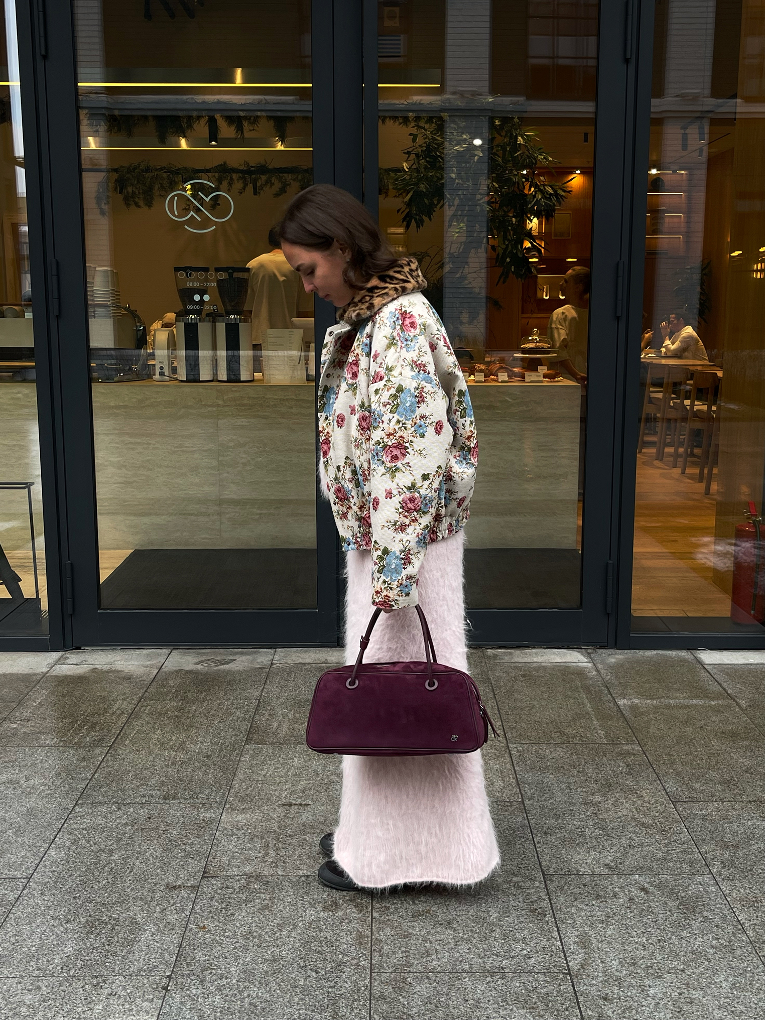 Сумка с аккуратной овальной формой и кожаными ручками в тон. Велюр приятно ложится в руку и добавляет образу глубины.