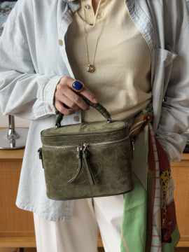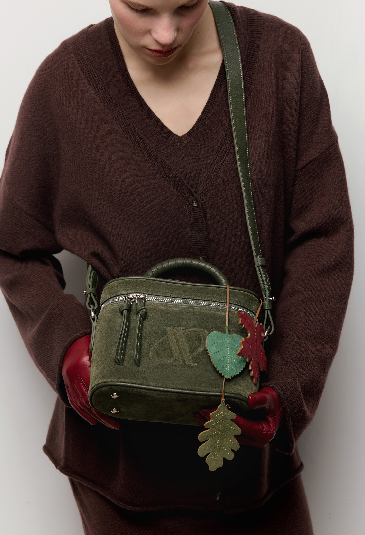 Воссоздали бестселлер — но теперь в велюровом исполнении. Внутри — общее отделение и небольшой карман для мелочей. Снаружи — удобный карман для пластиковых карт. В комплекте есть съёмный регулируемый ремень.