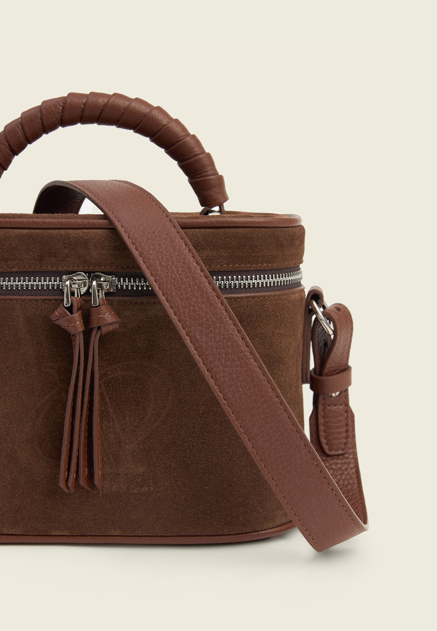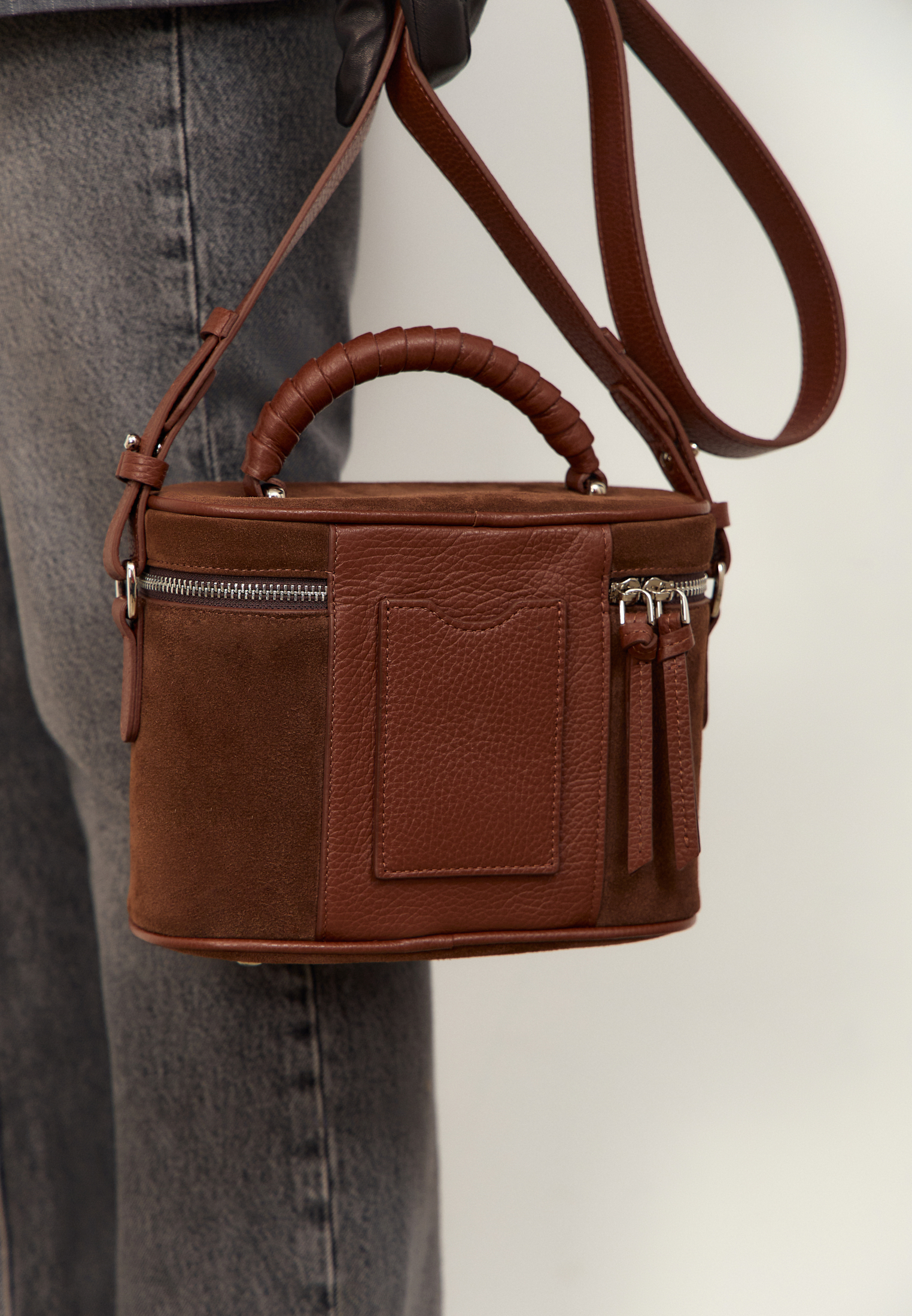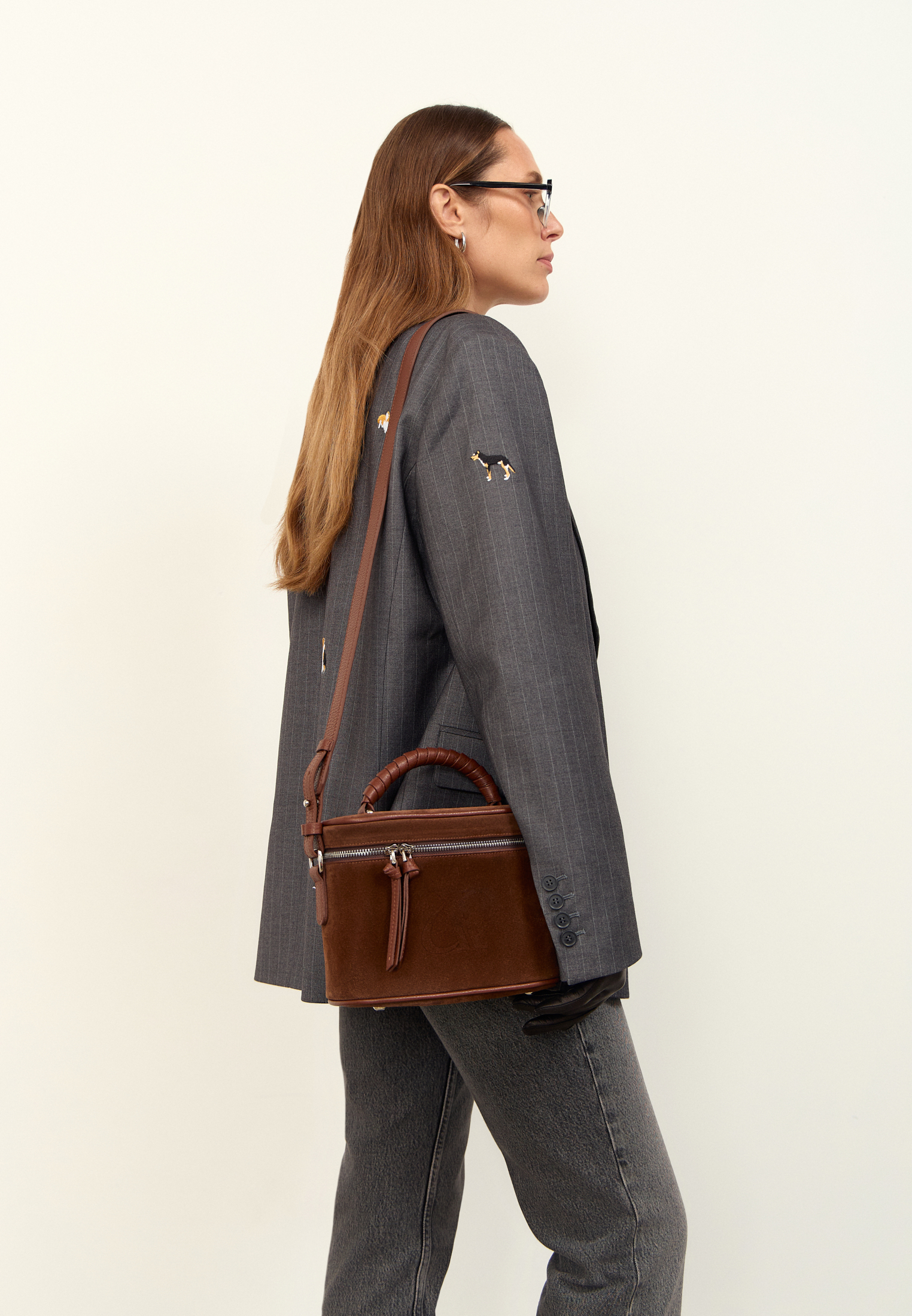 Воссоздали бестселлер — но теперь в велюровом исполнении. Внутри — общее отделение и небольшой карман для мелочей. Снаружи — удобный карман для пластиковой карты. В комплекте есть съёмный регулируемый ремень.