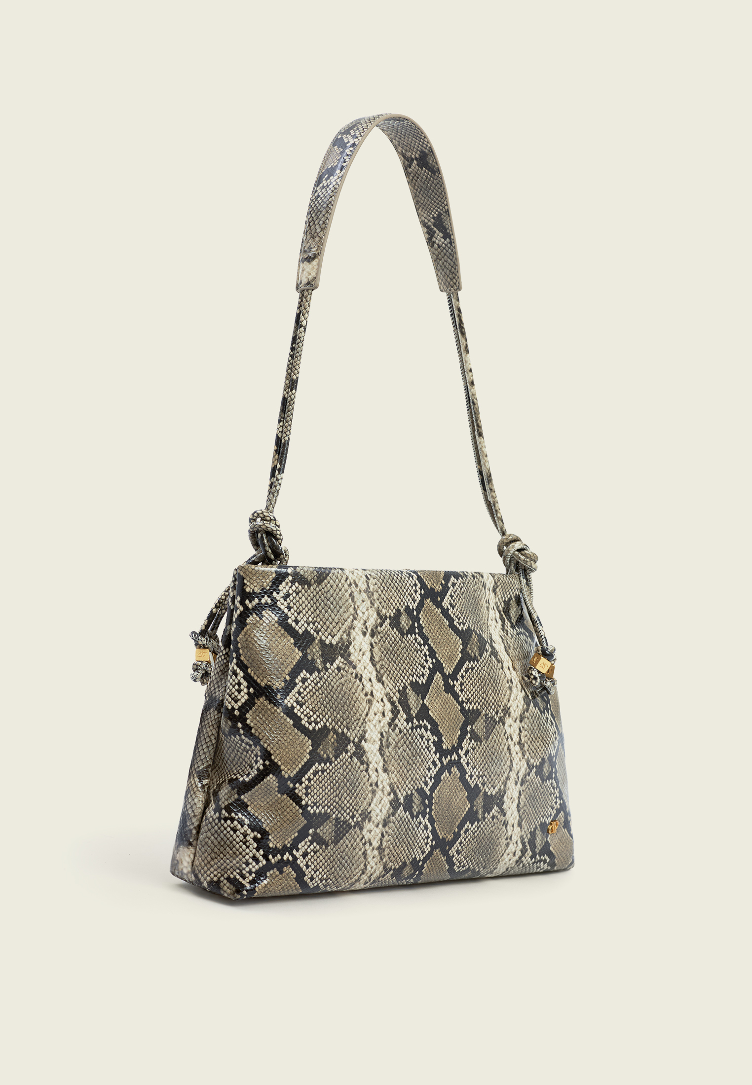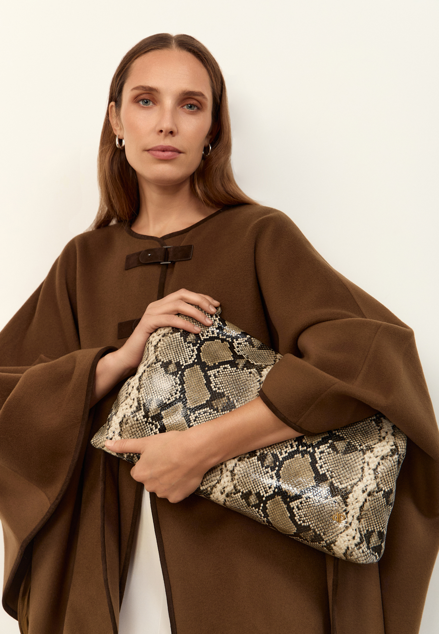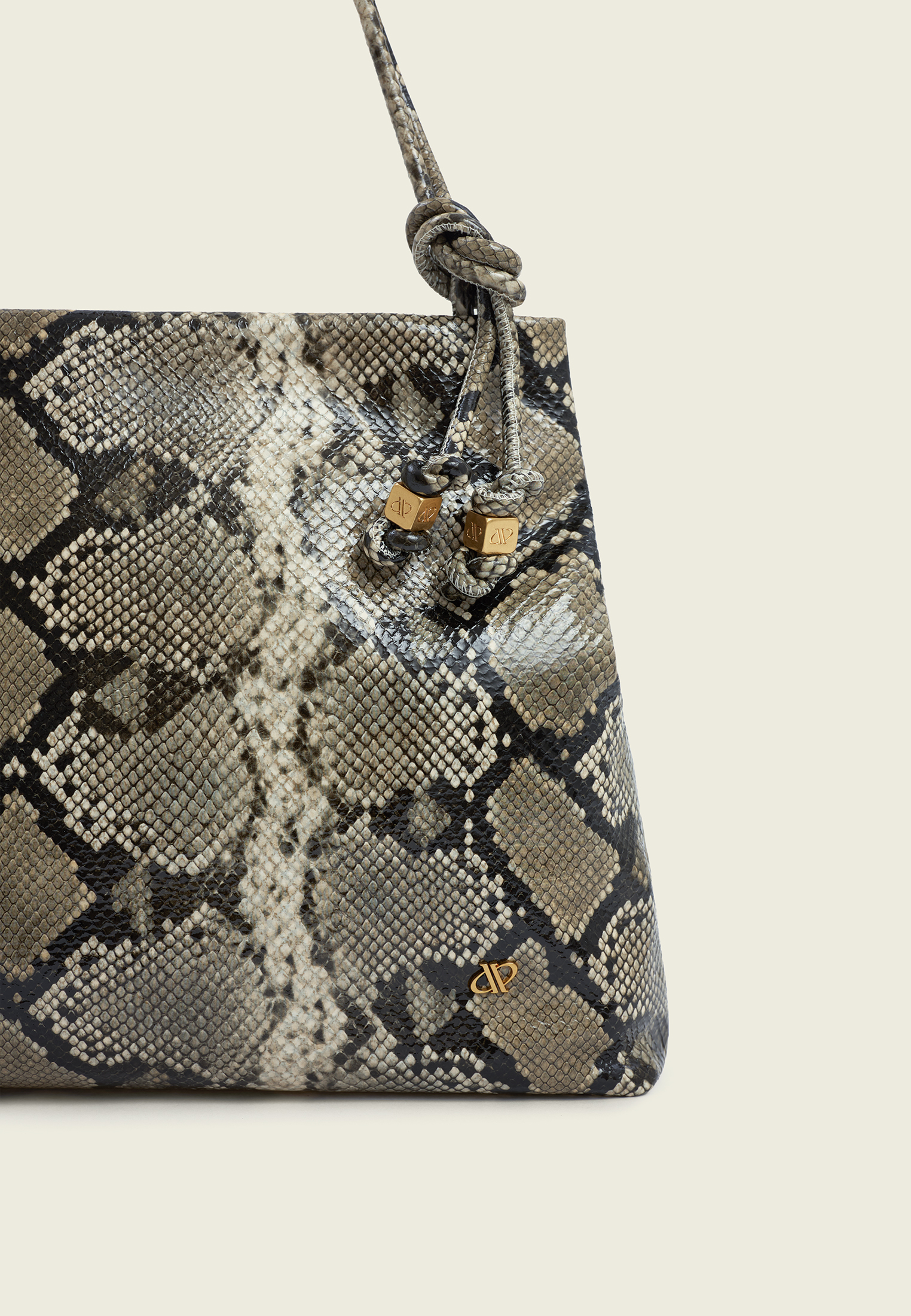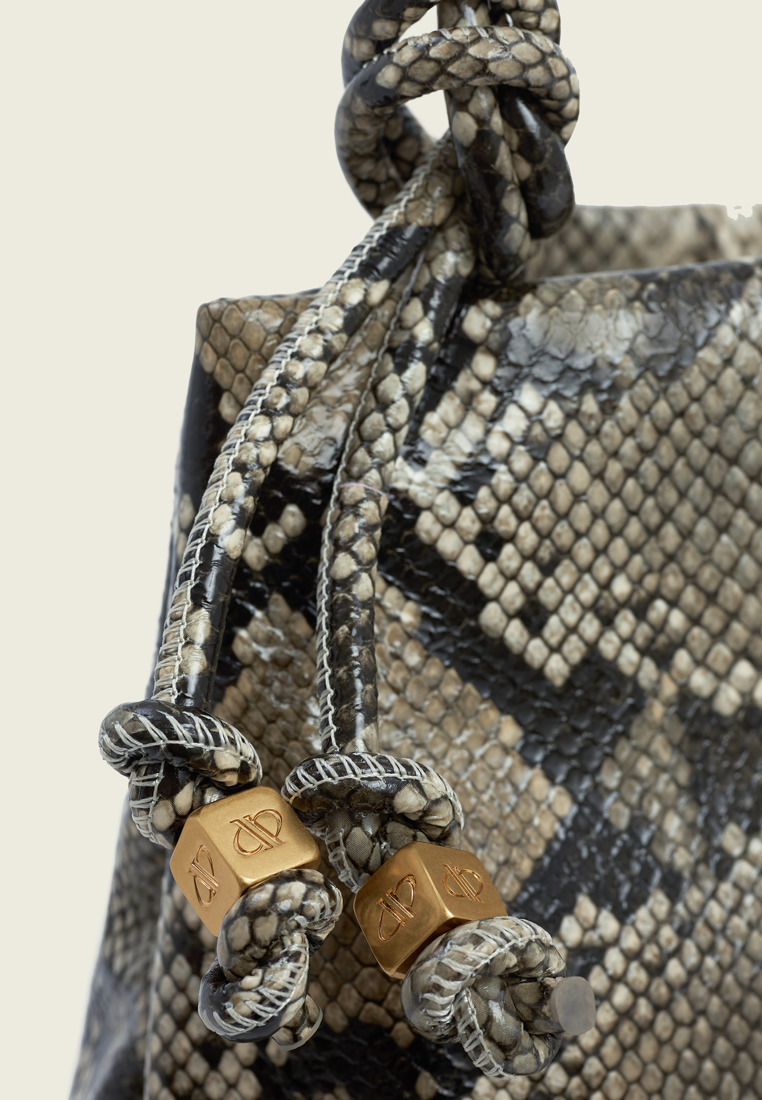Сумка из натуральной кожи с тиснением под питона — стильный и выразительный аксессуар. Фактурная поверхность точно имитирует змеиную кожу, добавляя глубину, благородный блеск и характер.