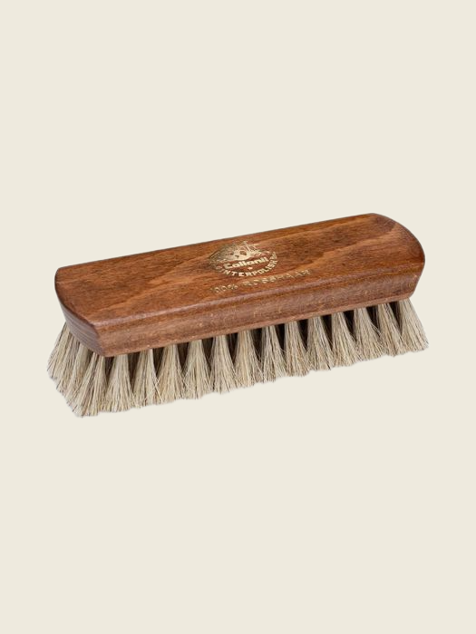 Натуральная деревянная щетка с мягким конским ворсом идеально подходит для чистки. Ее щетина бережно ухаживает за любыми поверхностями, включая лакированные, кожаные и замшевые.